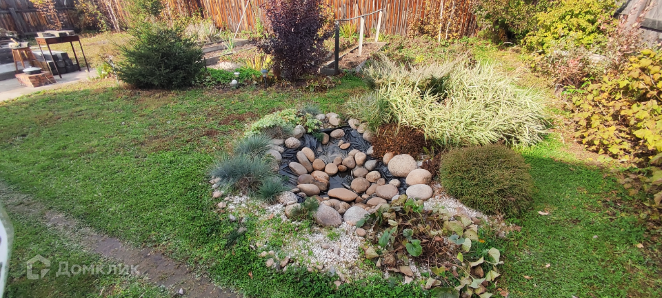 зона для отдыха, газон, грядки и облагороженный пруд
