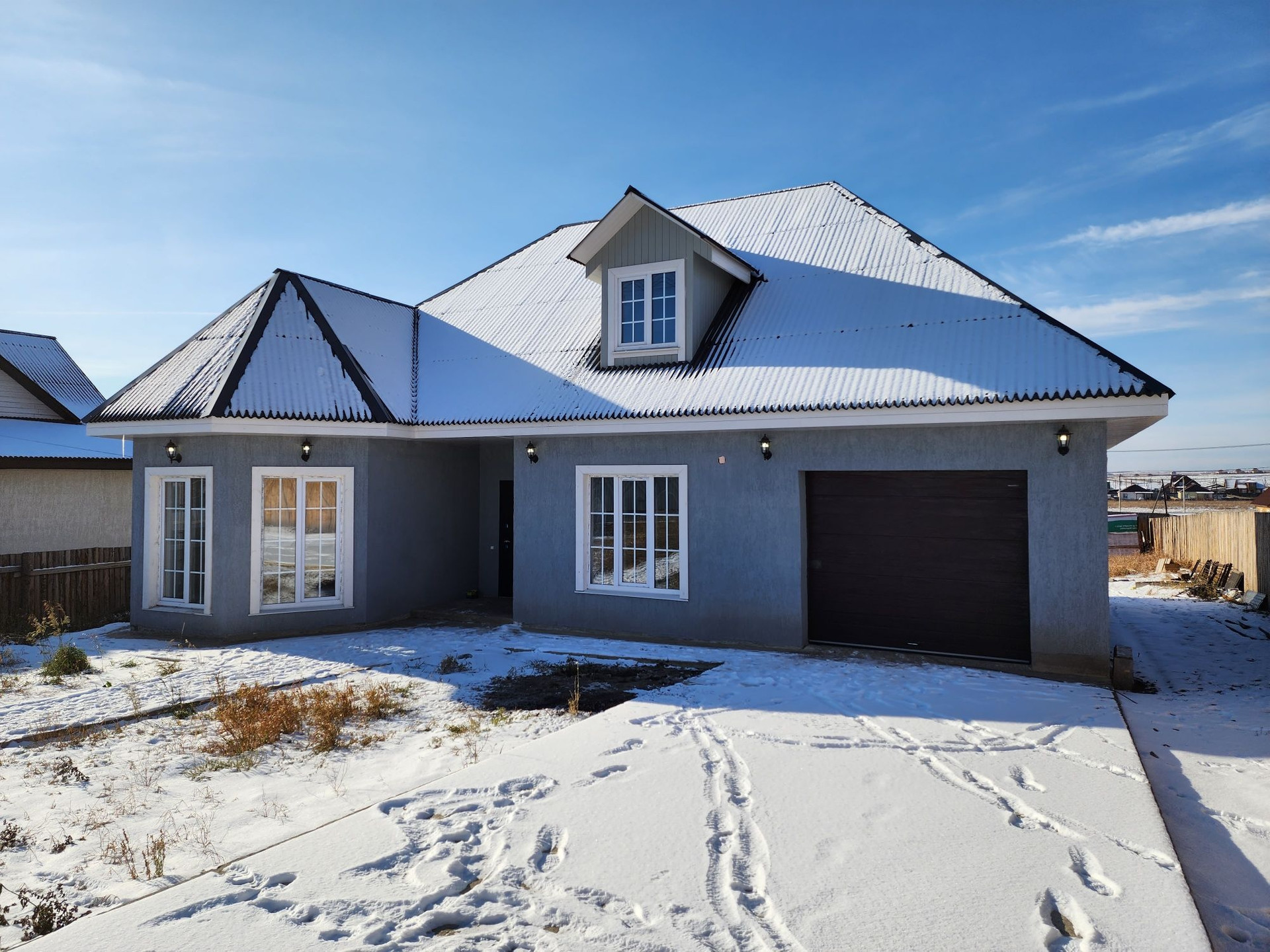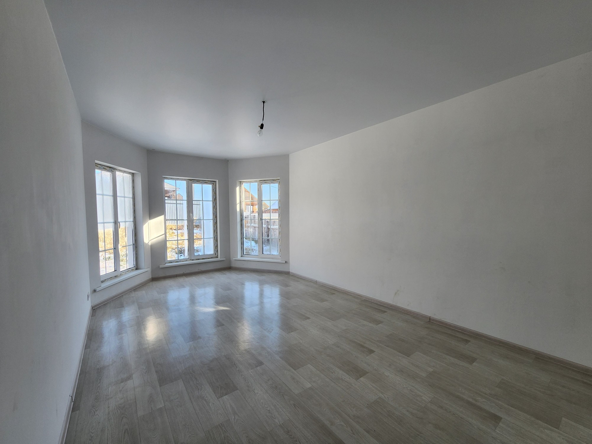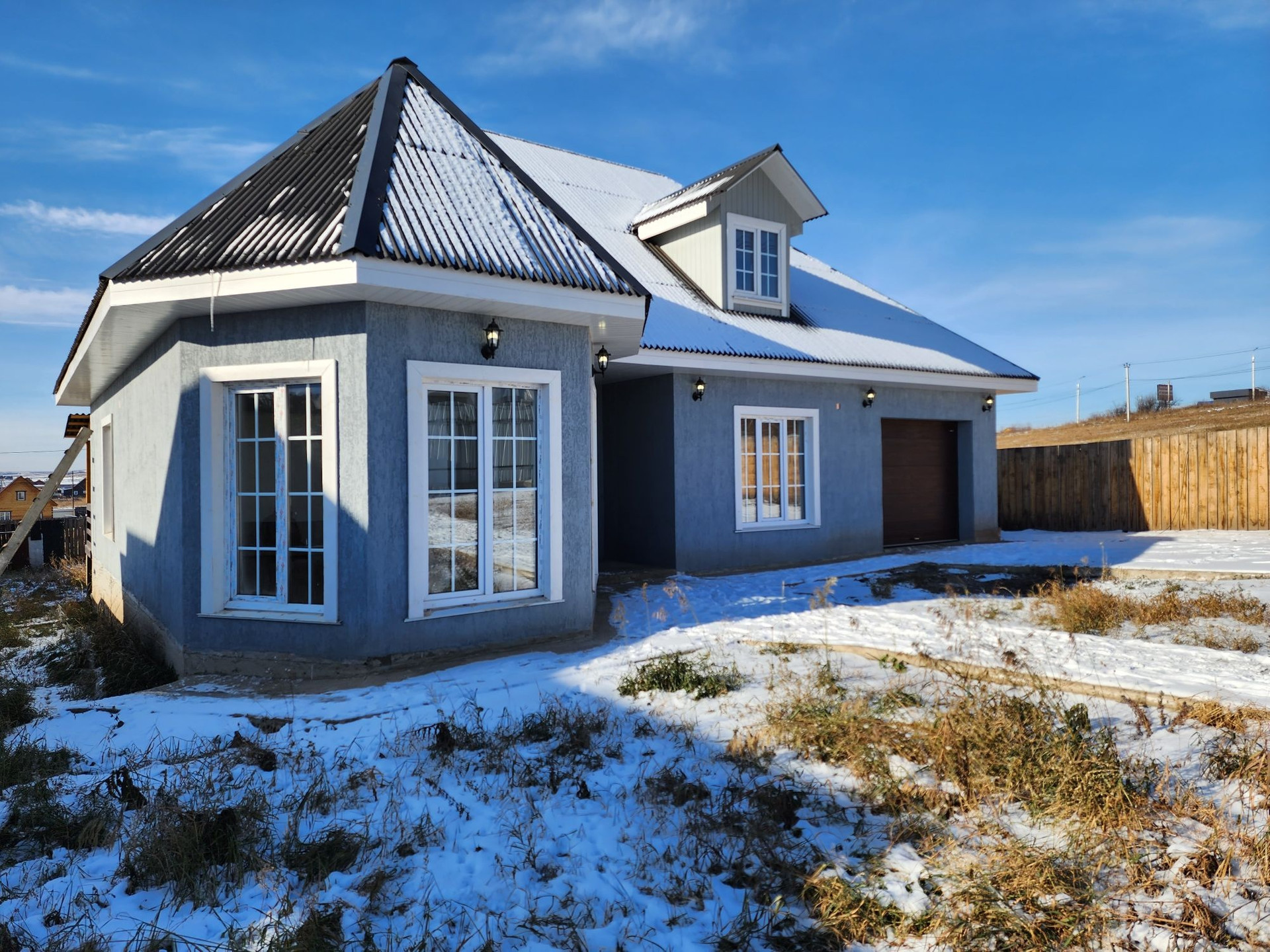 А теперь о доме: в нём расположены 3 раздельные и очень просторные комнаты, кухня-студия с выходом на террасу во двор, совмещённый сан.узел, гараж.