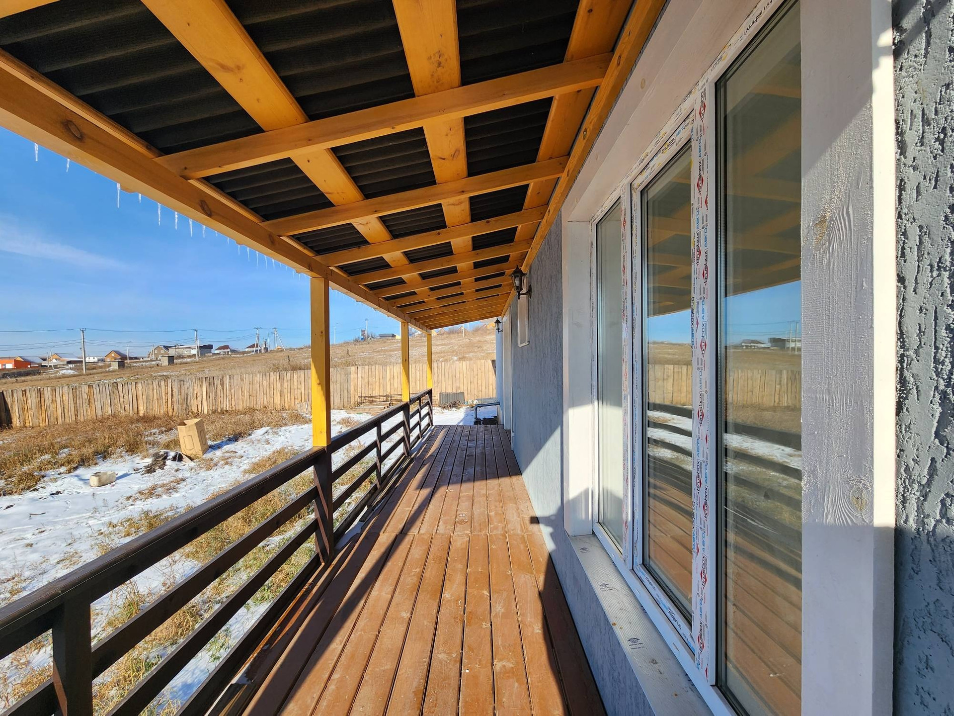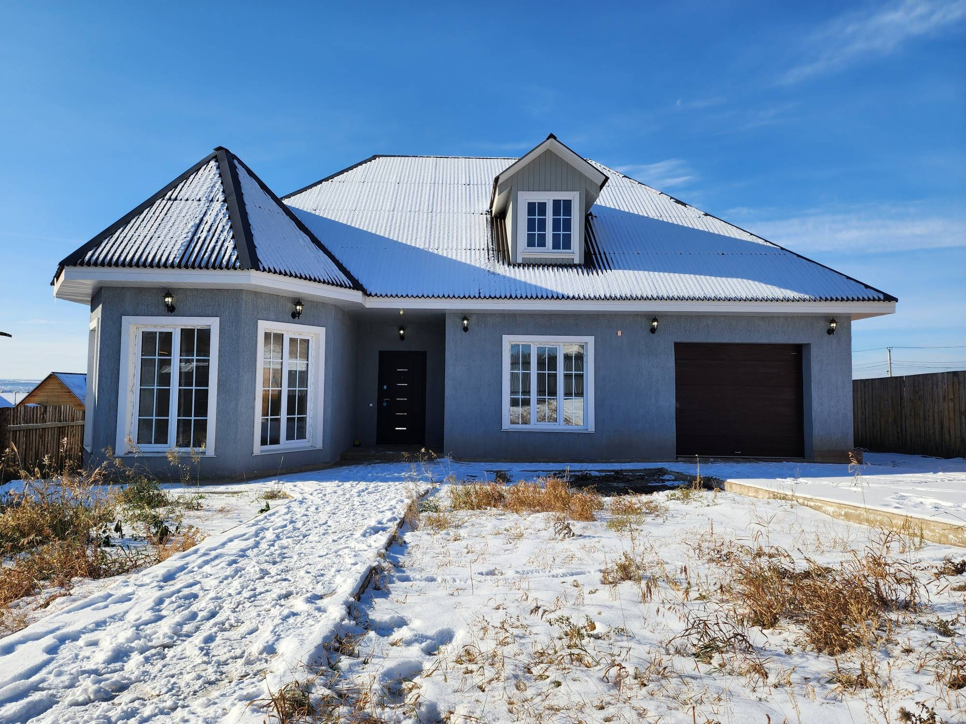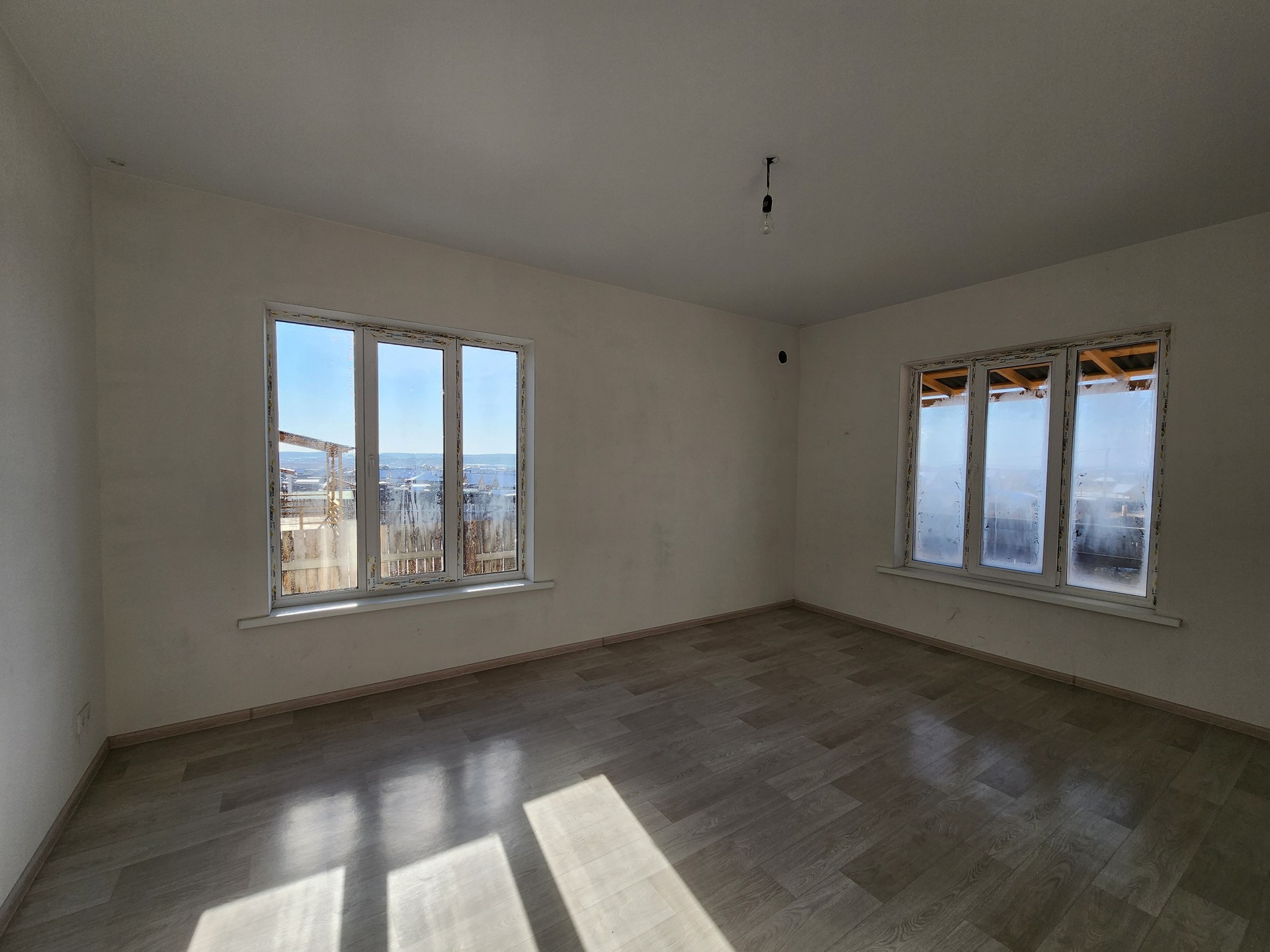 А теперь о доме: в нём расположены 3 раздельные и очень просторные комнаты, кухня-студия с выходом на террасу во двор, совмещённый сан.узел, гараж.
