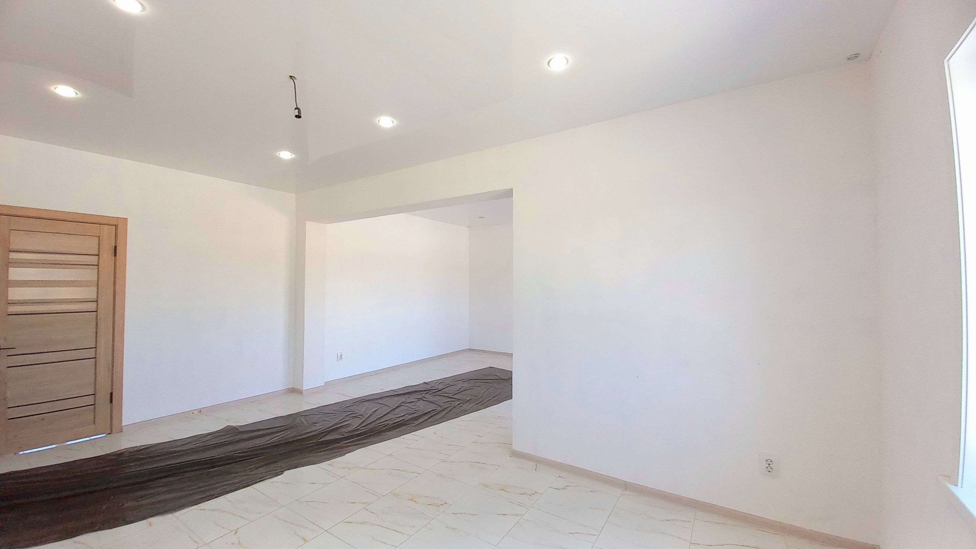 Подготовлены все коммуникации для комфортной жизни. Тёплый водяной пол. Вода - собственная скважина. Канализация - септик. Электричество подключено по всему дому, розетки, выключатели в каждой комнате.  ОФИЦИАЛЬНЫЙ СВЕТ!!!Внутренняя отделка: натяжные потолки с точечным освещением, кафель в санузле, линолеум под плинтус в комнатах.
