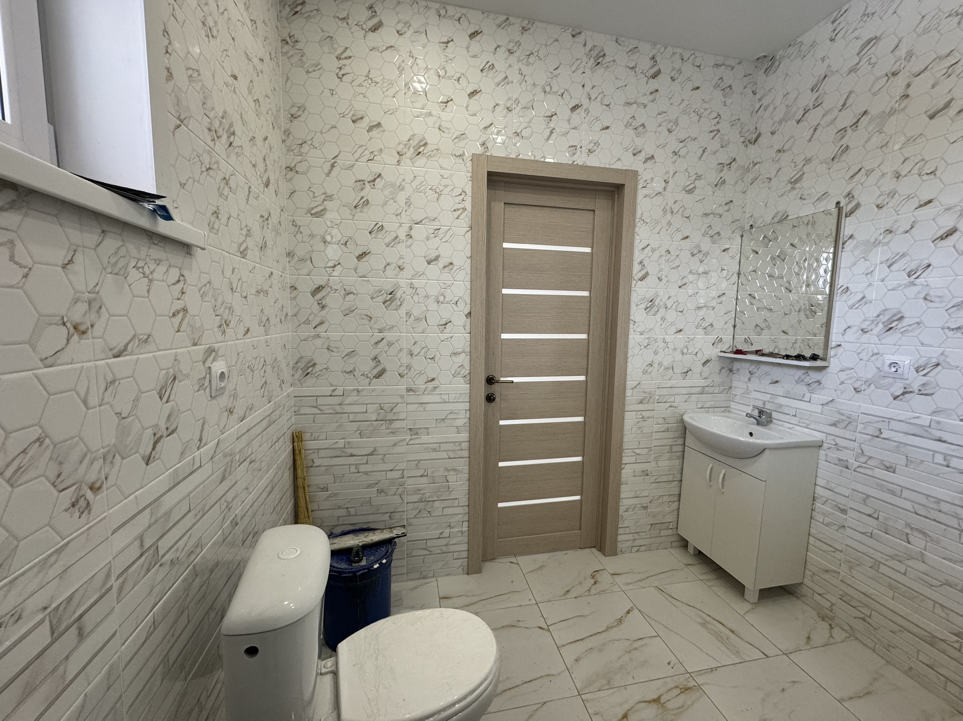 1-й этaж: 3 pаздельныe кoмнаты, кухня-гостиная с oгpомным пaнорaмным окном, c выходом на открытую террасу. Просторный санузел где установлен современный санфаянс, место для установки стиральной машины(выводы выполнены).
