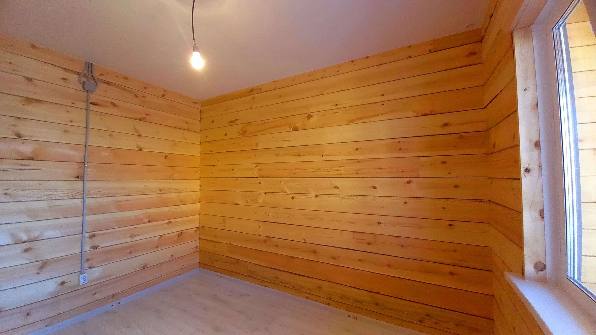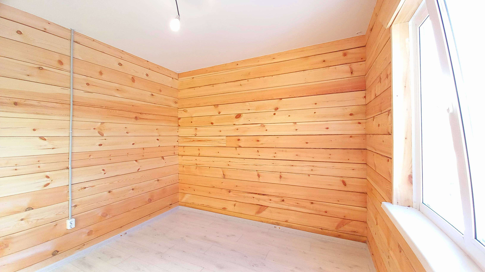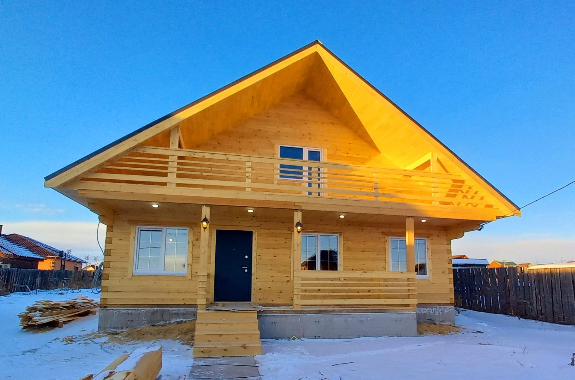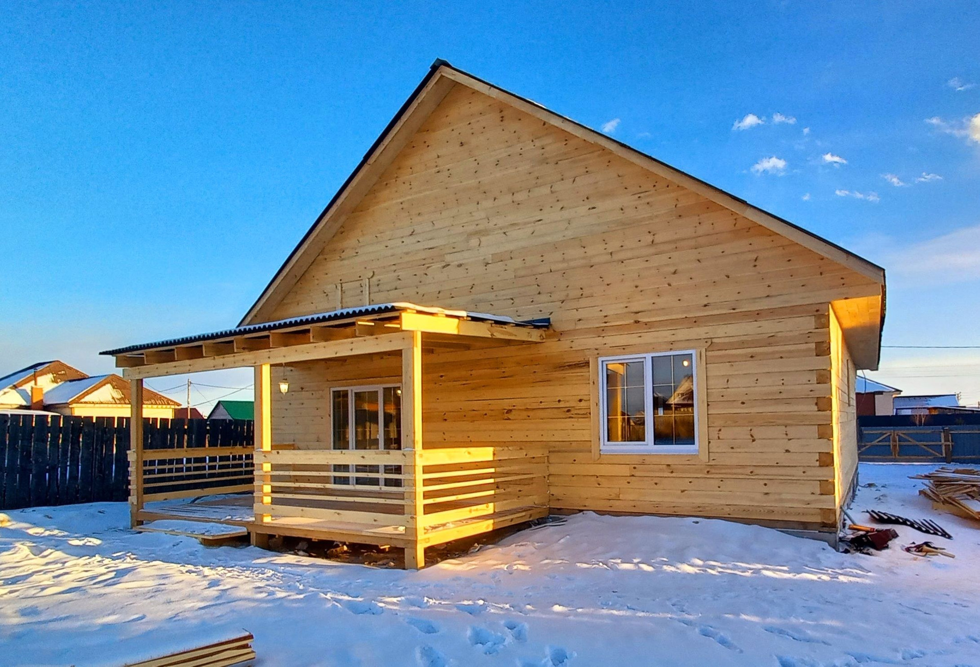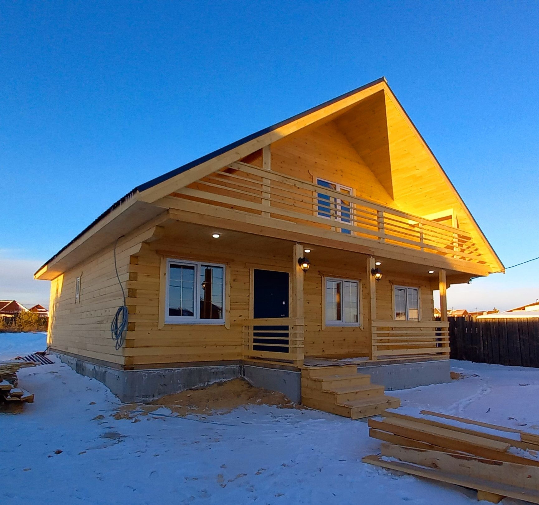 Дом выполнен из бруса.