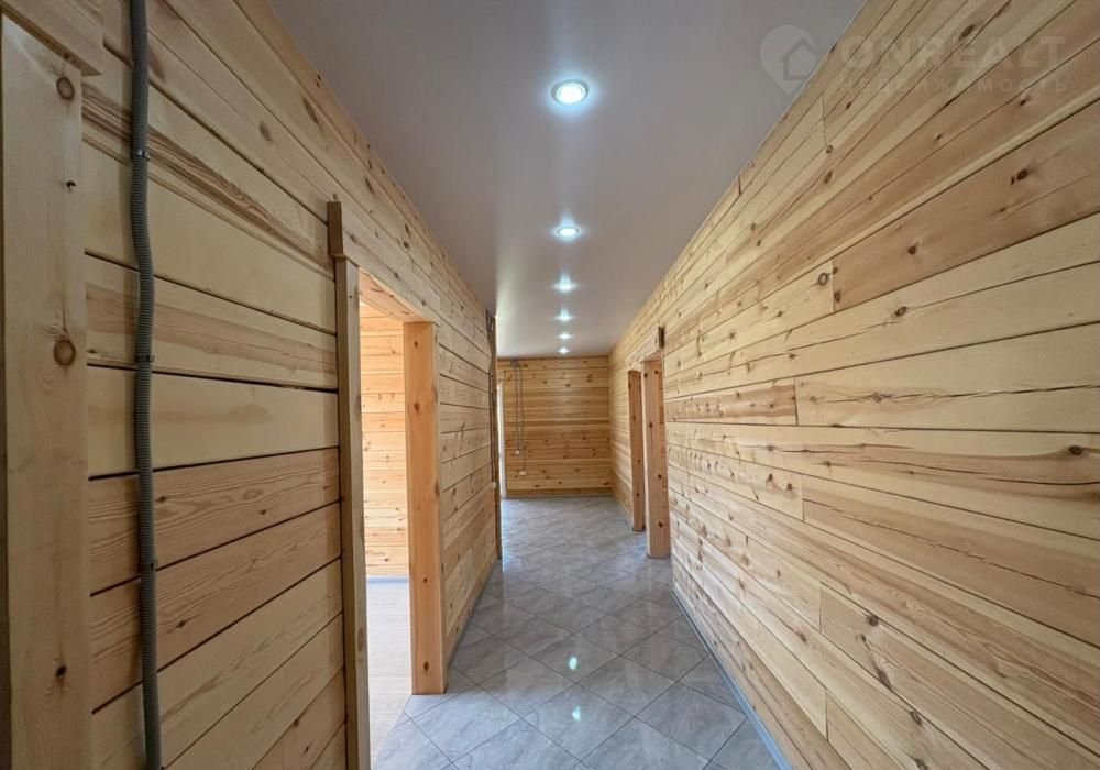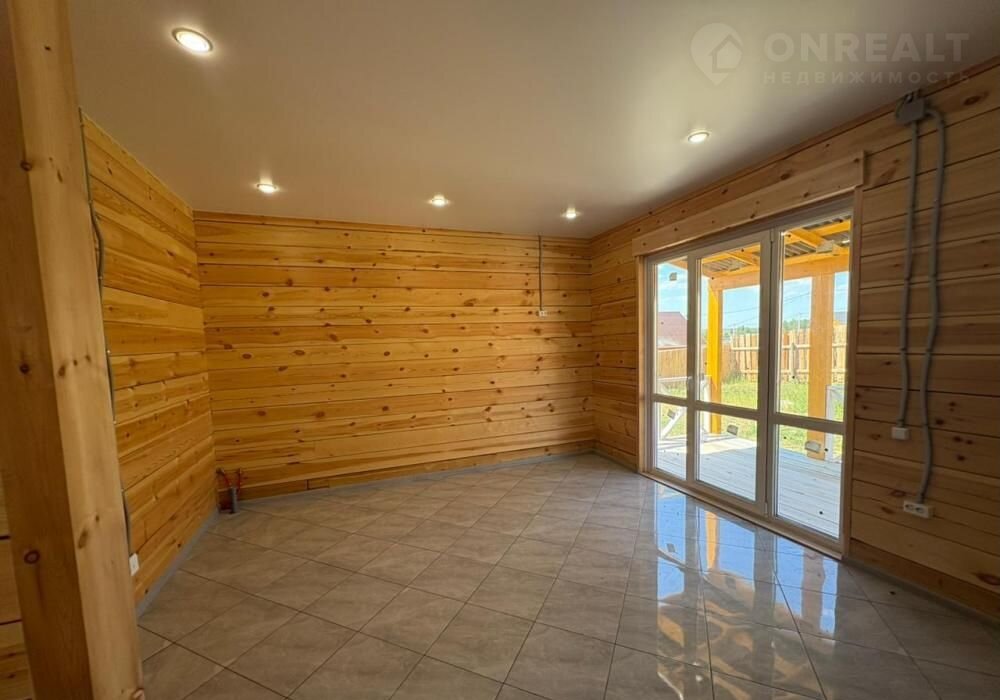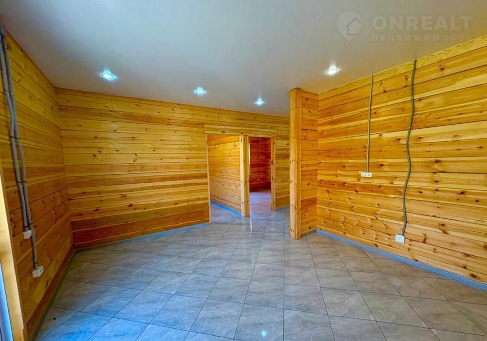 В доме : натяжные потолки, в комнатах- качественный линолеум. В санузле, в прихожей и кухне- студии напольная  плитка. Брус отшлифованный. В санузле: ванная, унитаз,