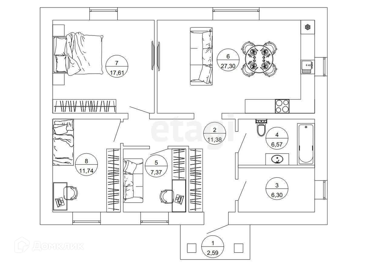 Общая площадь 90 м2
