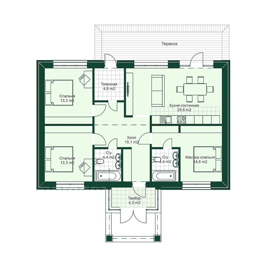 Площадь дома – 99,8 м²