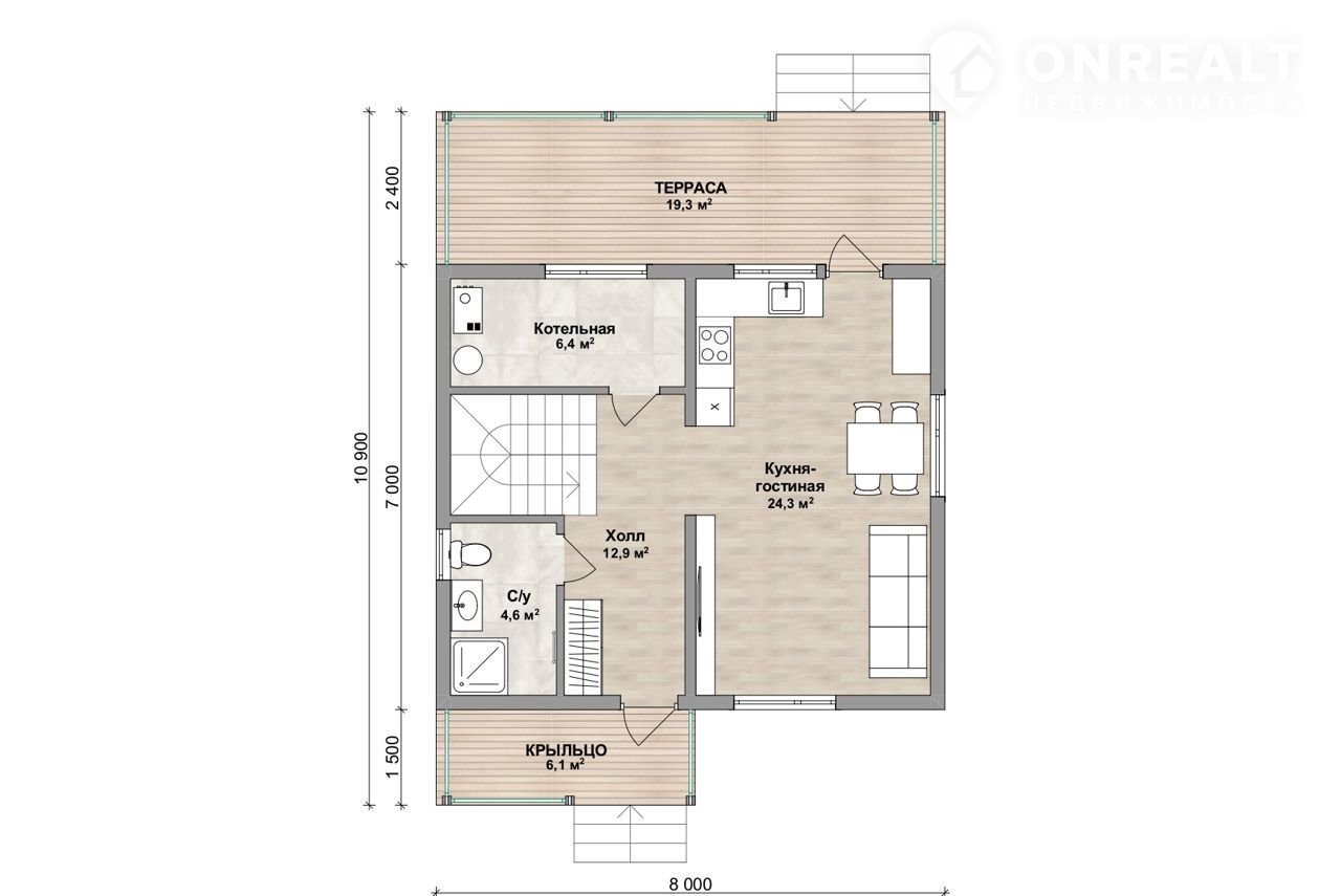 Терраса - 19,3 м2;