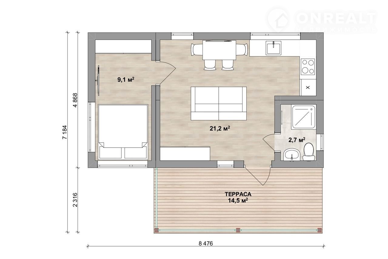 Терраса - 14,5 м2;