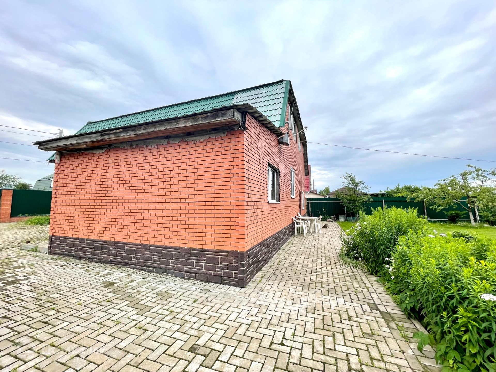 На ухоженном участке с газоном, фруктовыми деревьями и кустарники. Межевание есть. Двор выложен плиткой-250 кв. м., во двор с улицы откатные ворота. В деревне, в конце участка находится отличный пруд, где можно купаться и ловить рыбу.