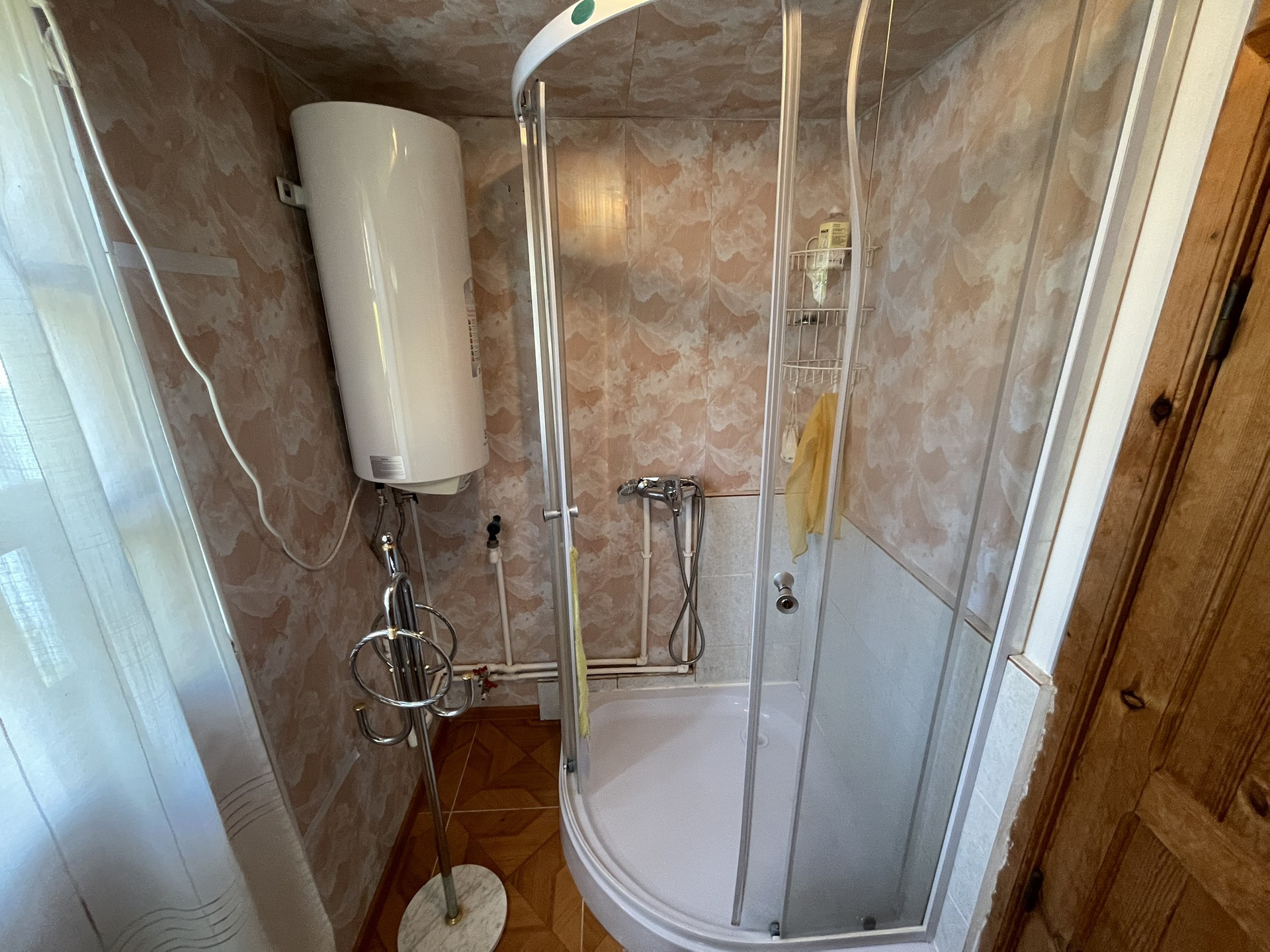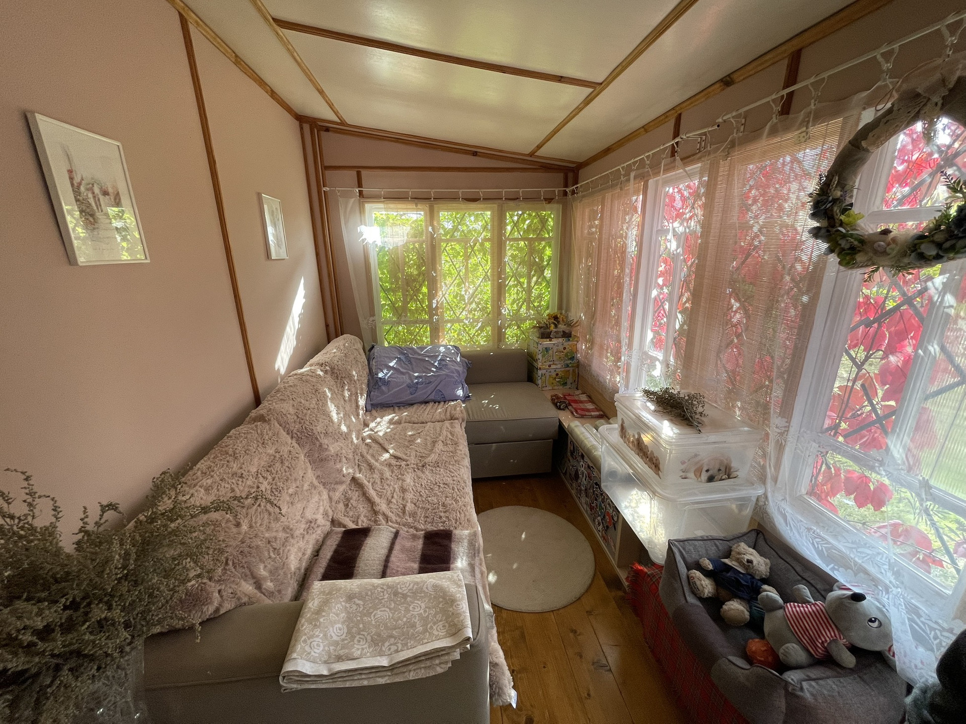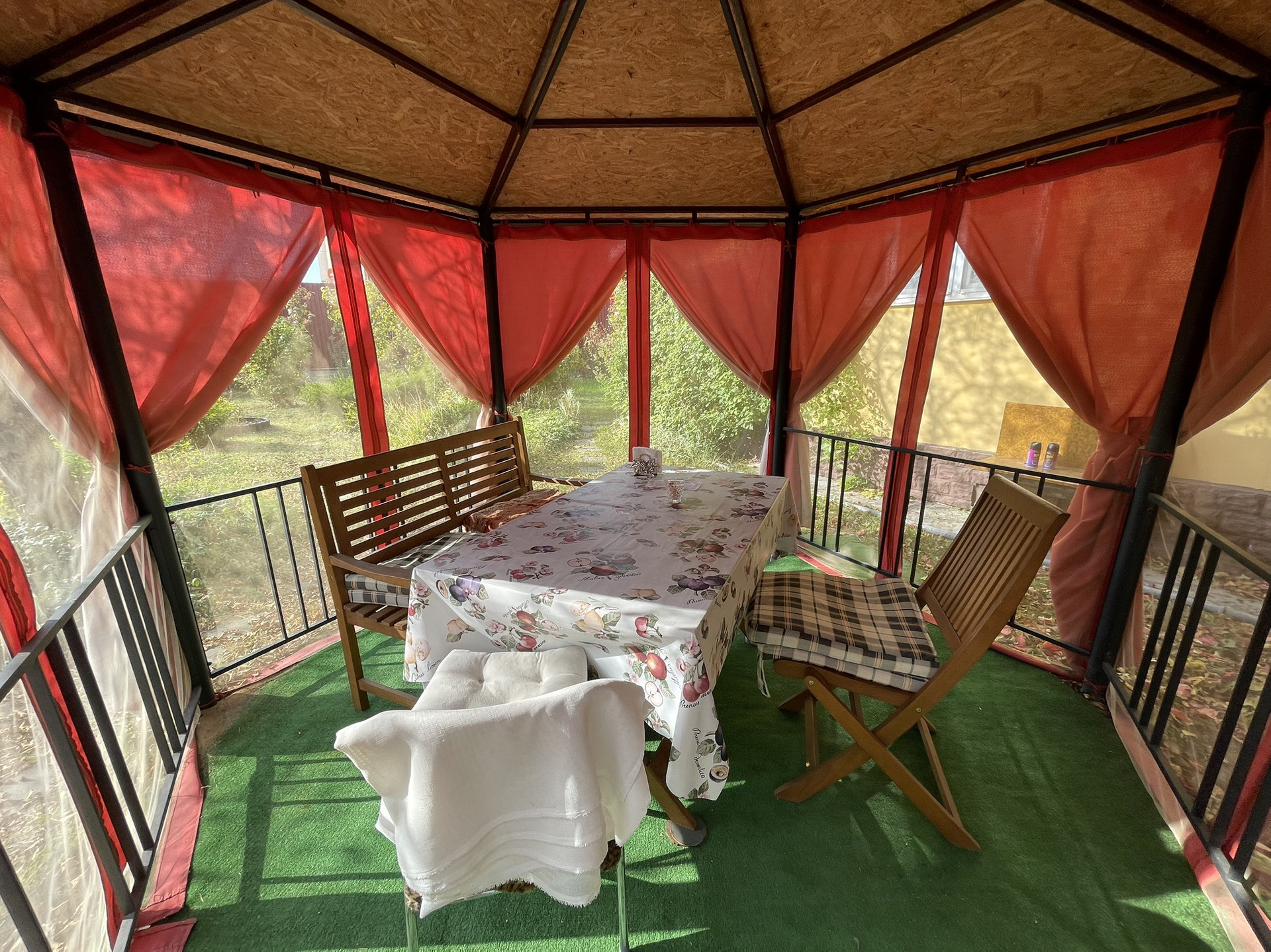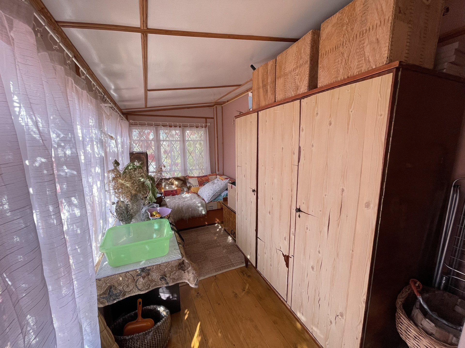 Так же на участке просторный бетонный гараж 3.45*9.80 метров из бетонных капитальных панелей, проведено электричество; баня, беседка, качели, теплицы, участок очень ухоженный, множество плодово-ягодных и декоративных растений, полностью огорожен забором из проф.настила по всему периметру, соседи живут постоянно. В пешей доступности - магазин, аптека, школа, дет.сад, автобусная остановка (Першино-Киржач), до автобуса на Москву 10 минут пешком.
