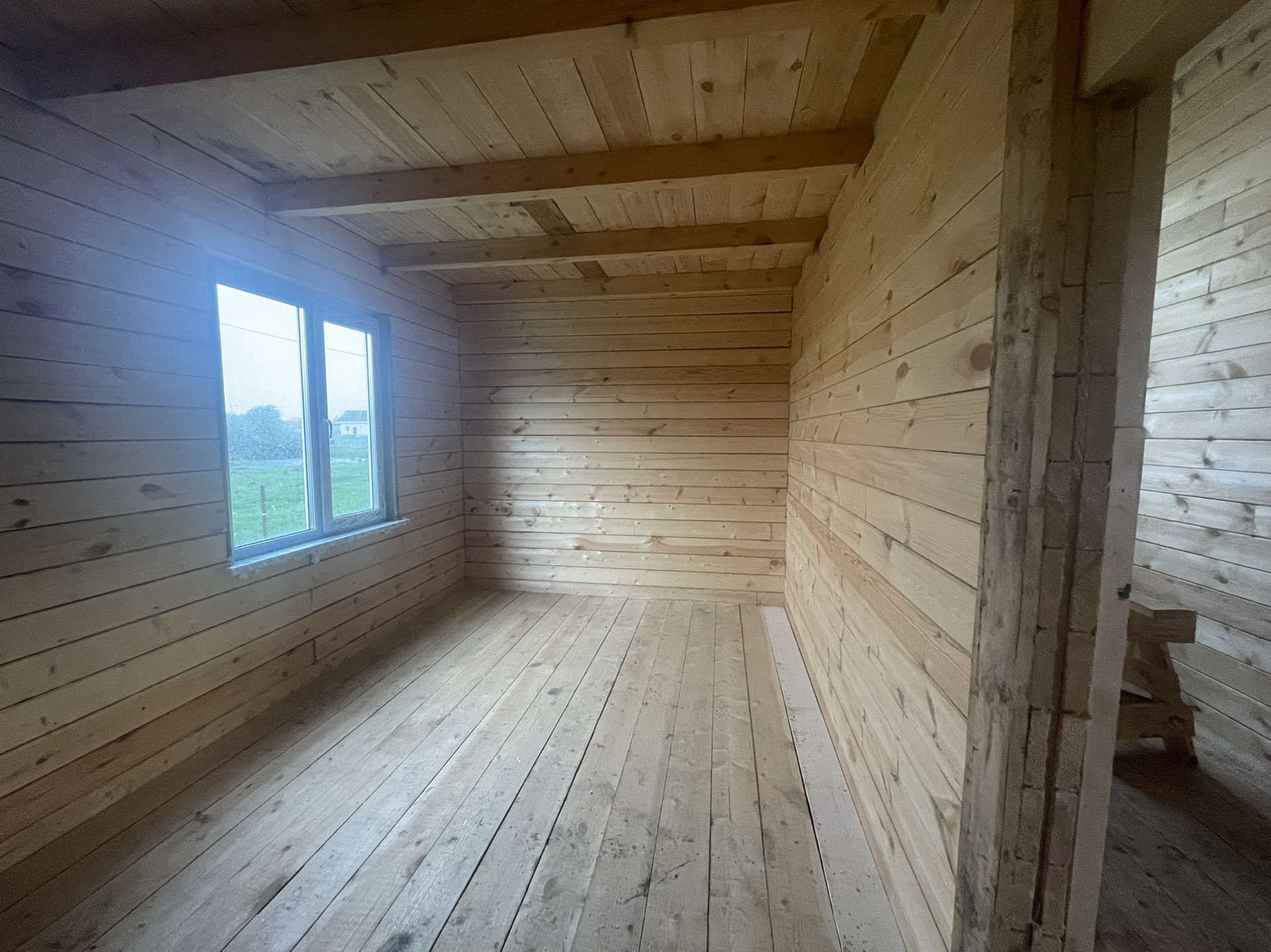 Отделка: полы фанера,потолок натяжной,откосы на окнах ,электромонтаж, водоснабжение и отопление .