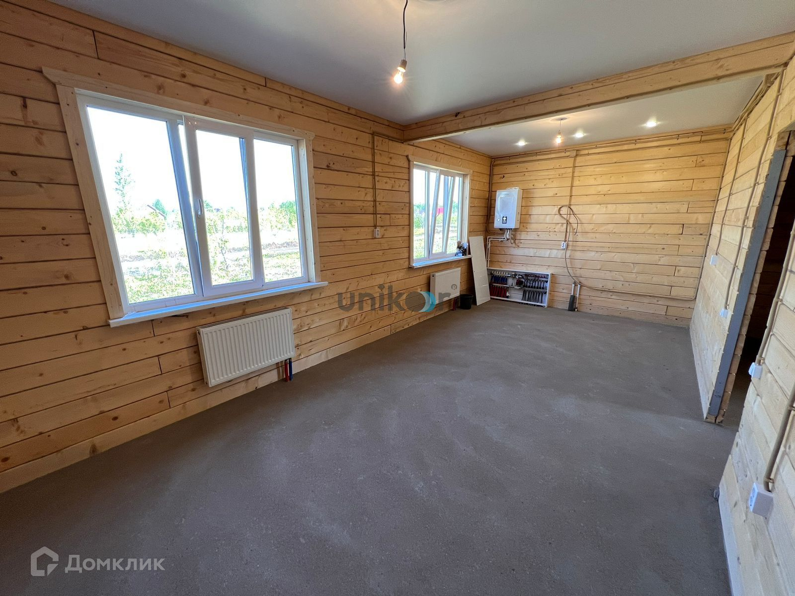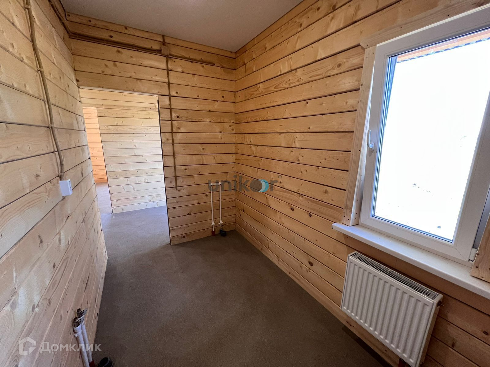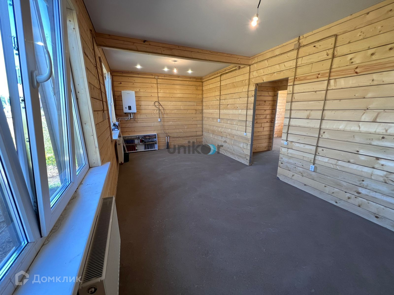 Площадь дома 80,4 кв.м, отделка в доме получистовая (полы - бетонная стяжка, система - теплый пол, стены строганный брус, потолки натяжные с точенными светильниками, вся необходимая для проживая сантехника унитаз, раковина).
