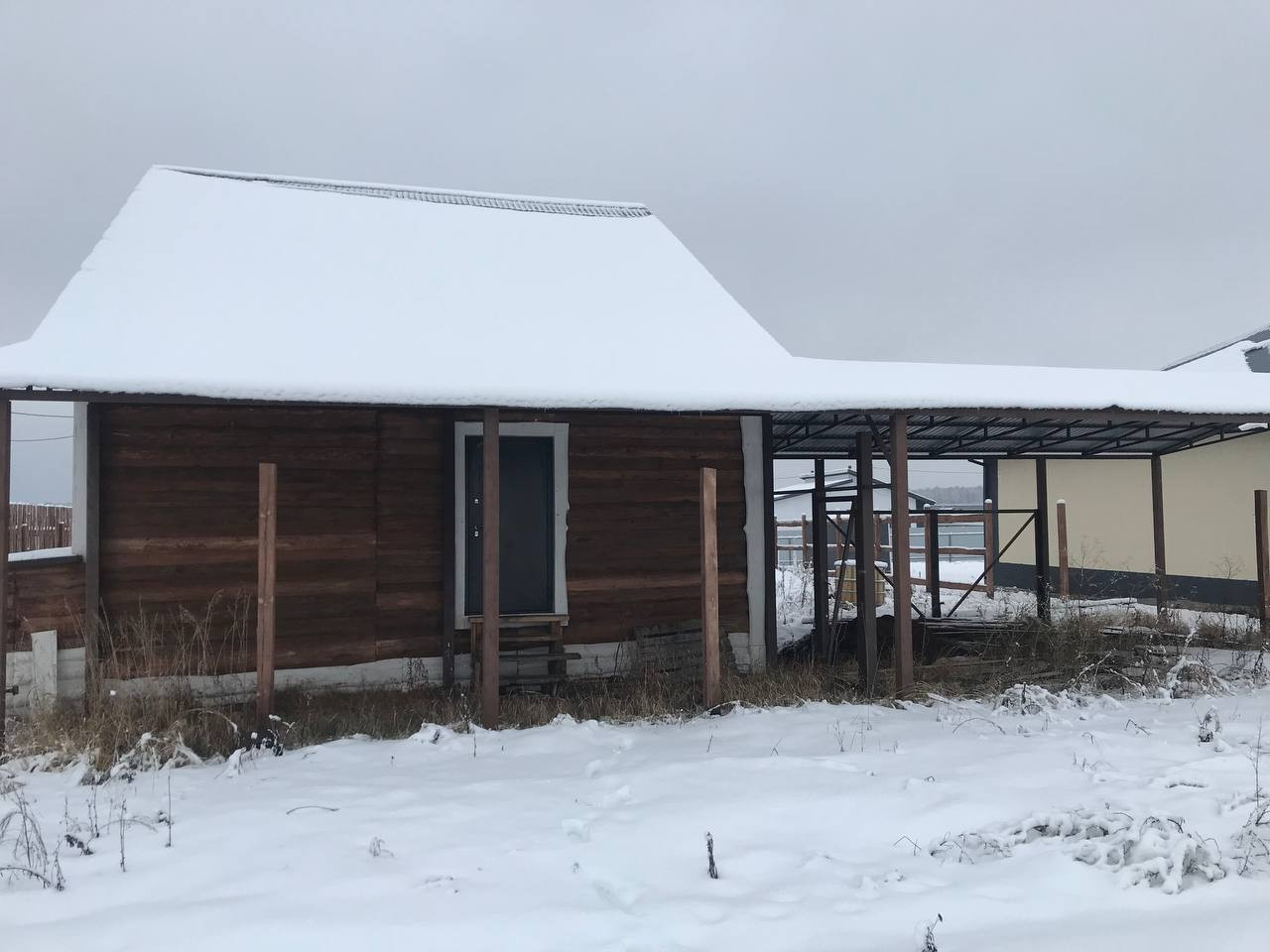 Готовый навес перед домом и парковкой на 3-6 машин.