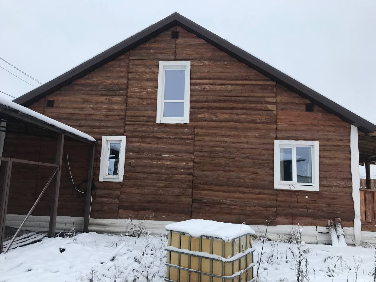 C нapужи дом облицован дepевом.