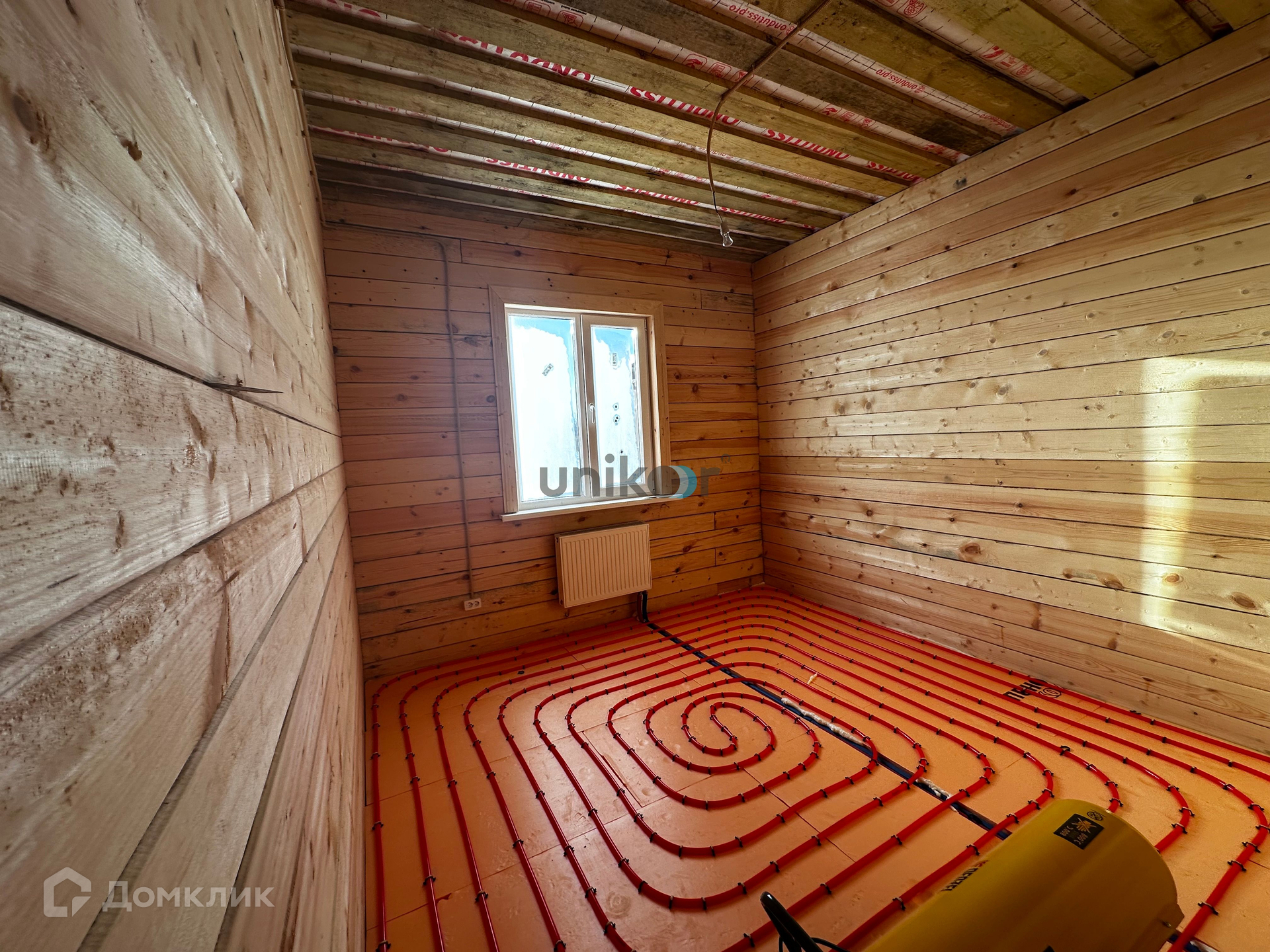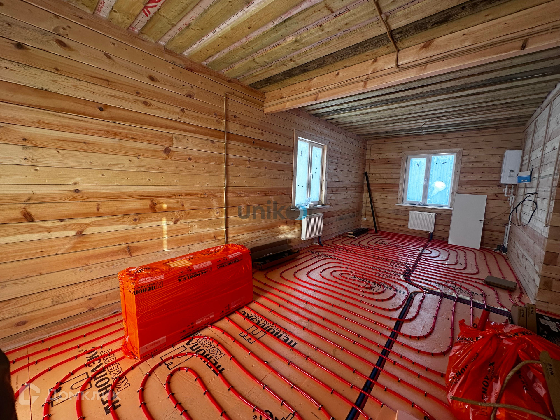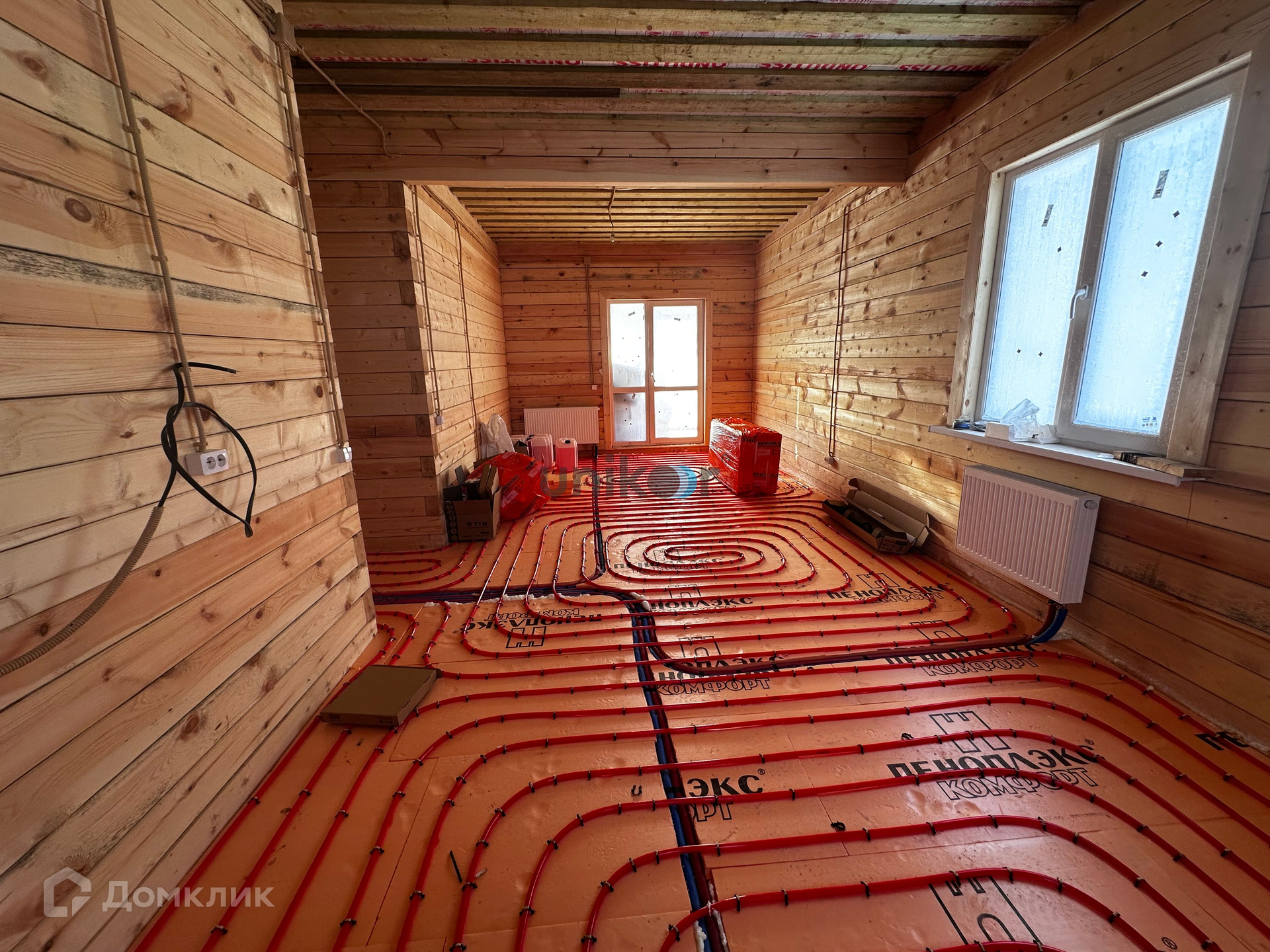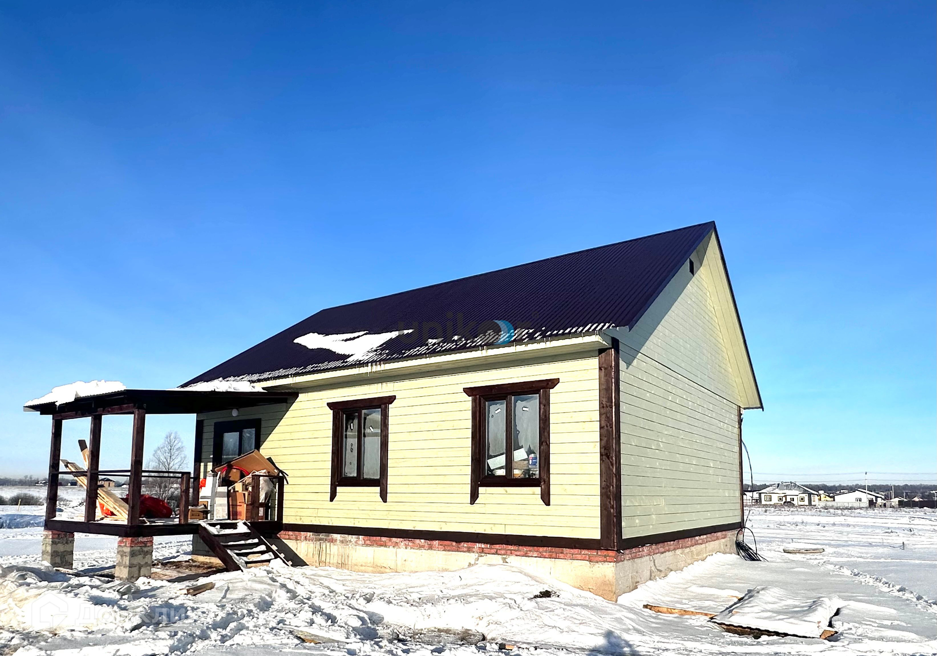 Площадь дома 95 кв.м. на участке 8,61 с. Отделка получистовая потолки натяжные, с точечными светильниками, на полу система теплый пол с лучевой разводкой отопления, полусухая бетонная стяжка, в санузле установлена сантехника- унитаз, раковина. В дом заведены все коммуникации: электрическое отопление 380 В, вода- колодец, канализация, все разведено и работает. Газ проходит вдоль участка. В доме удобная планировка - просторные три спальные комнаты, большая кухня студия с выходом на террасу, санузел.Инфраструктура: Удобные подъездные пути, дороги отсыпаны, рядом остановка общественного транспорта и школьного автобуса, магазины, аптеки.