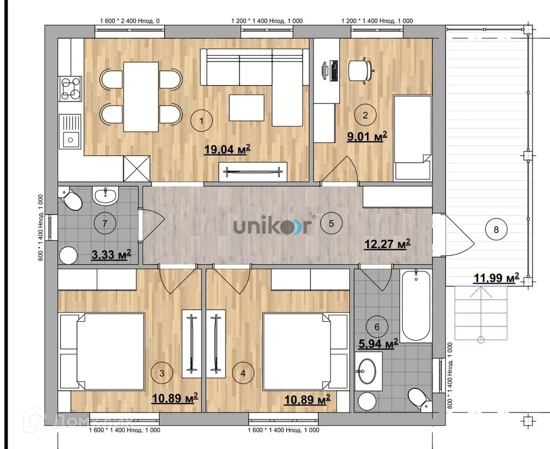 Материал: Теплоблок толщиной 400 мм, плотность D400