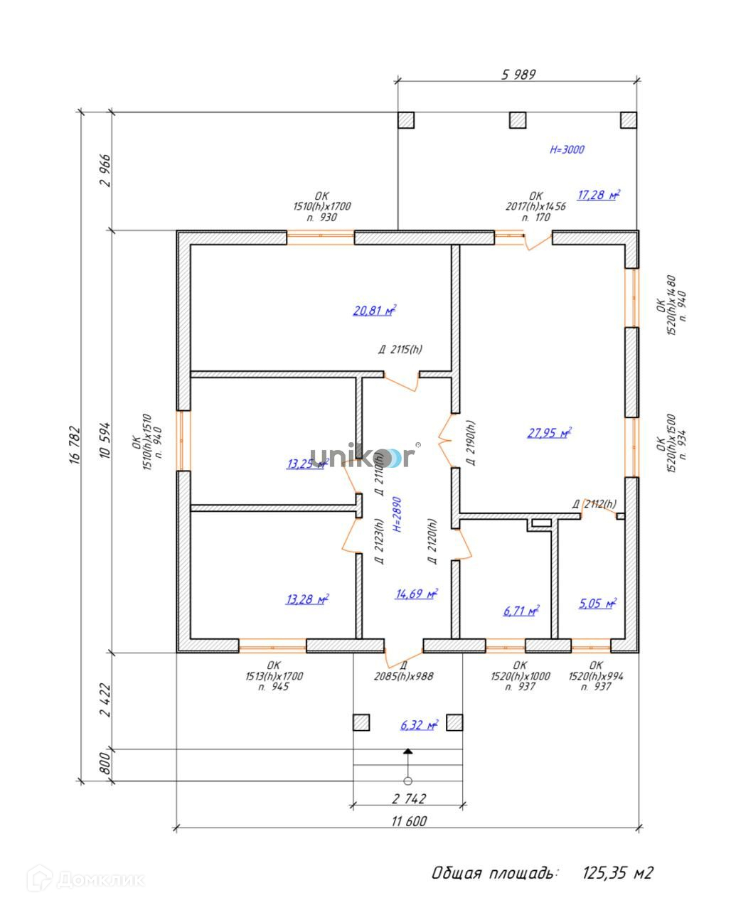 Общая площадь 125.4 м2