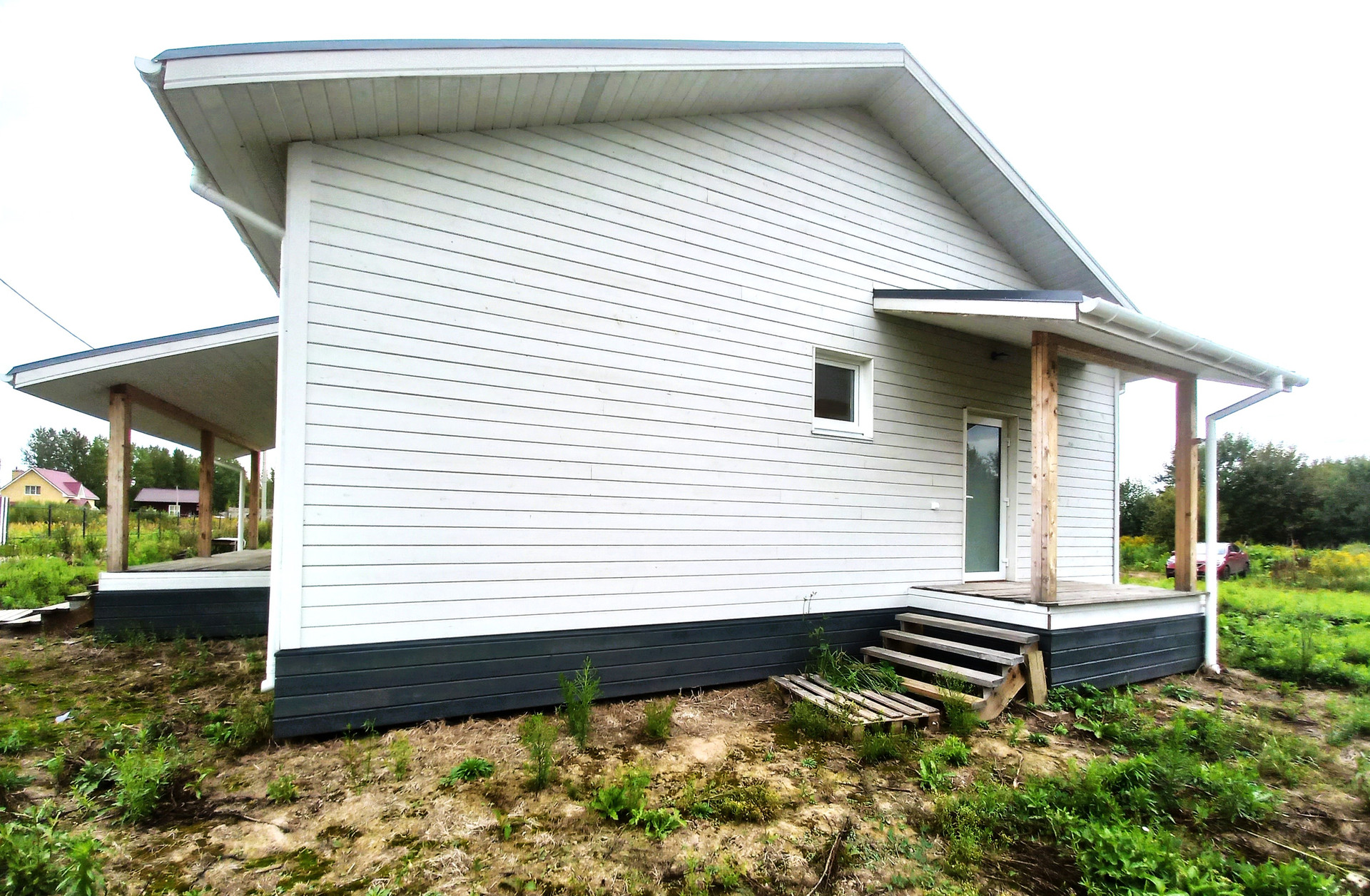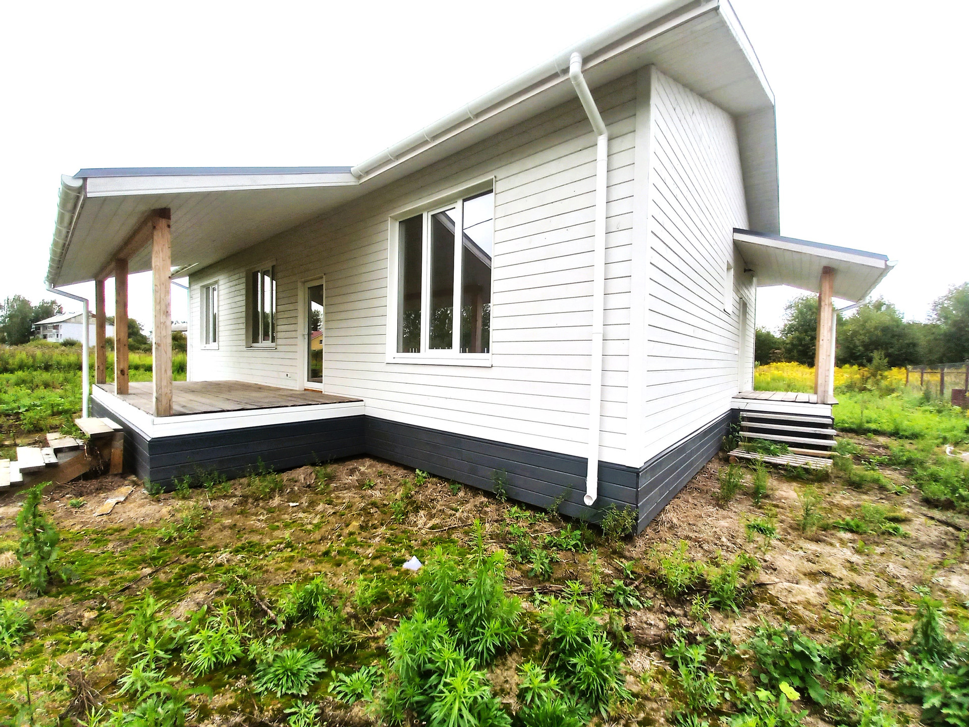 *** При строительстве дома использованы только качественные материалы. Внутренняя отделка стен в чистовом варианте, возможность сразу красить либо клеить обои, натягивать потолки; окна панорамные.