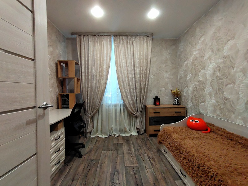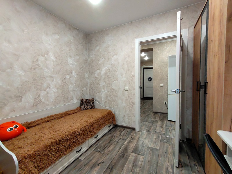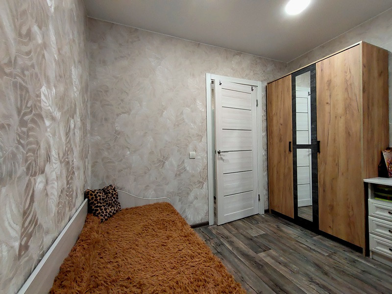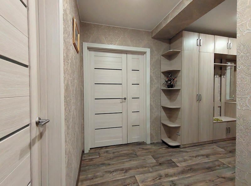 Прихожая, одна из комнат, туалет с новым ремонтом. В туалете выполнен теплый пол. Установлены новые межкомнатные и входная двери. Проведена замена остекления лоджии. Лоджия пригодна для обустройства дополнительного помещения (жилого или для хозяйственных нужд – на усмотрение хозяина).