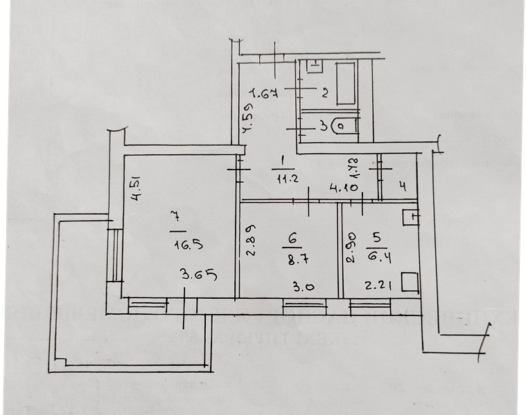 Площадь квартиры 48,9 кв.м. Высота потолков 2,6 м.  Прихожая - коридор площадью 11,2 кв.м.  Две комнаты площадью 16,5 кв.м и 8,7 кв.м. Кухня 6,4 кв.м.  Раздельный санузел. Огромная лоджия 11,2 кв.м, такие лоджии только в домах в этом районе.