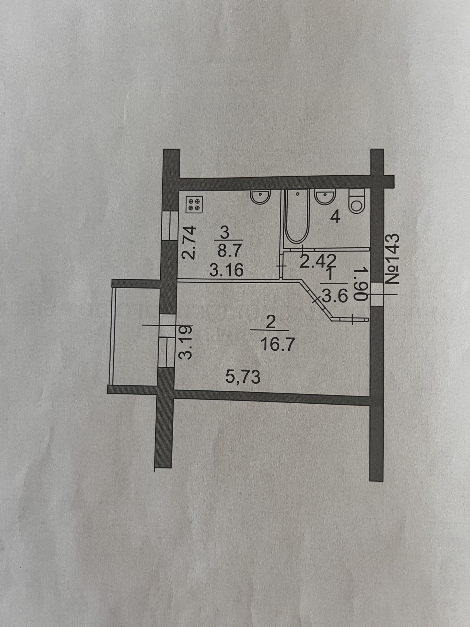 Жилая площадь 16.7 м2