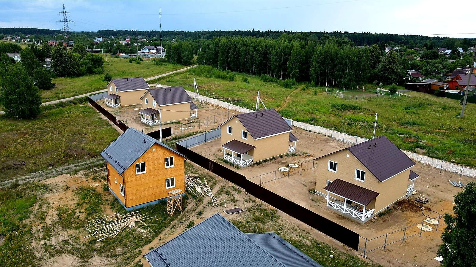 Участок ровный, огорожен забором из профлиста, площадью 7.99 соток (новая территория деревни). Подъездная дорога из твёрдого полотна.