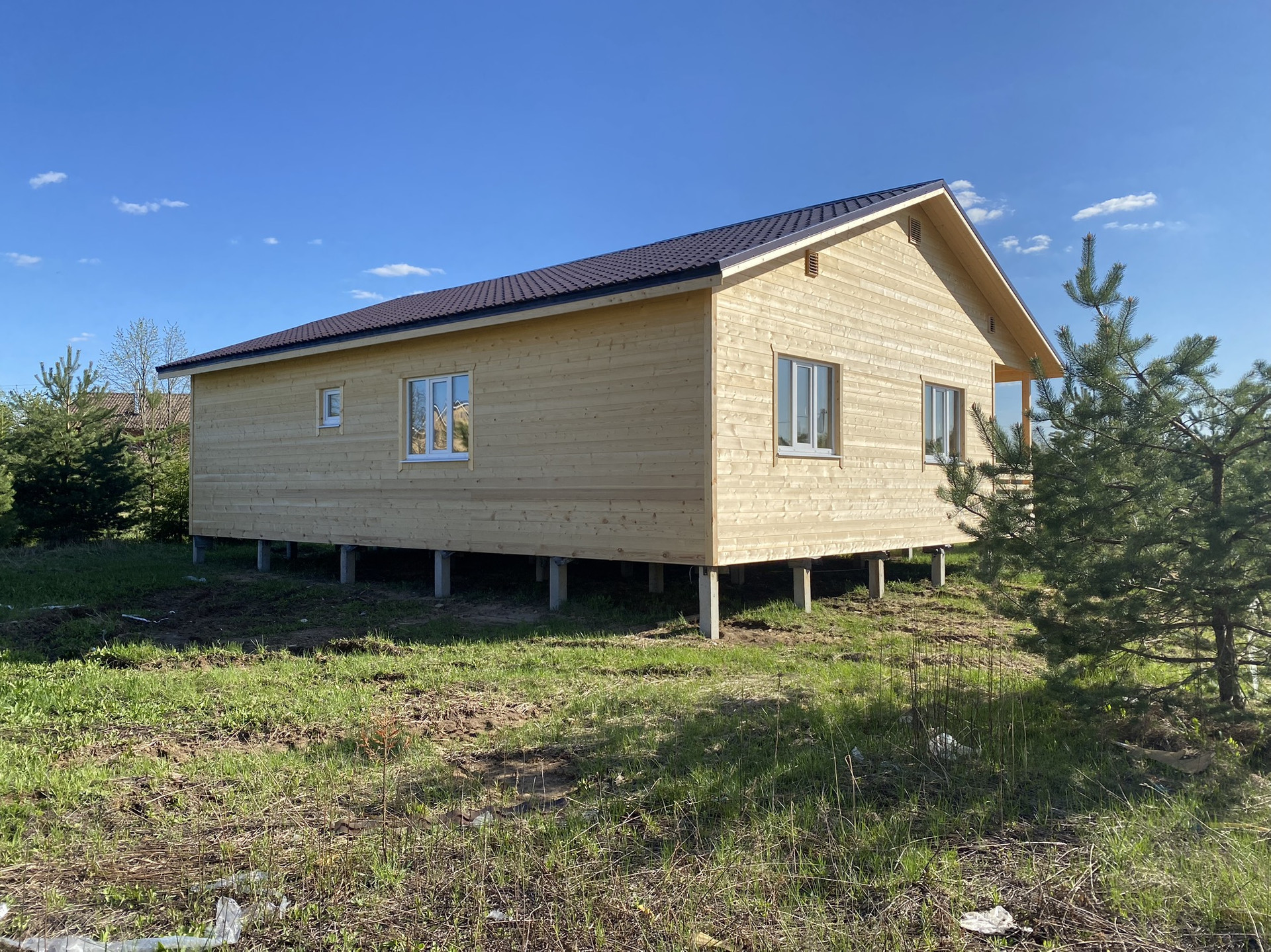 Дом построен по каркасной технологии премиум качества из пиломатериалов камерной сушки. Утепление перекрестное: 200 мм.