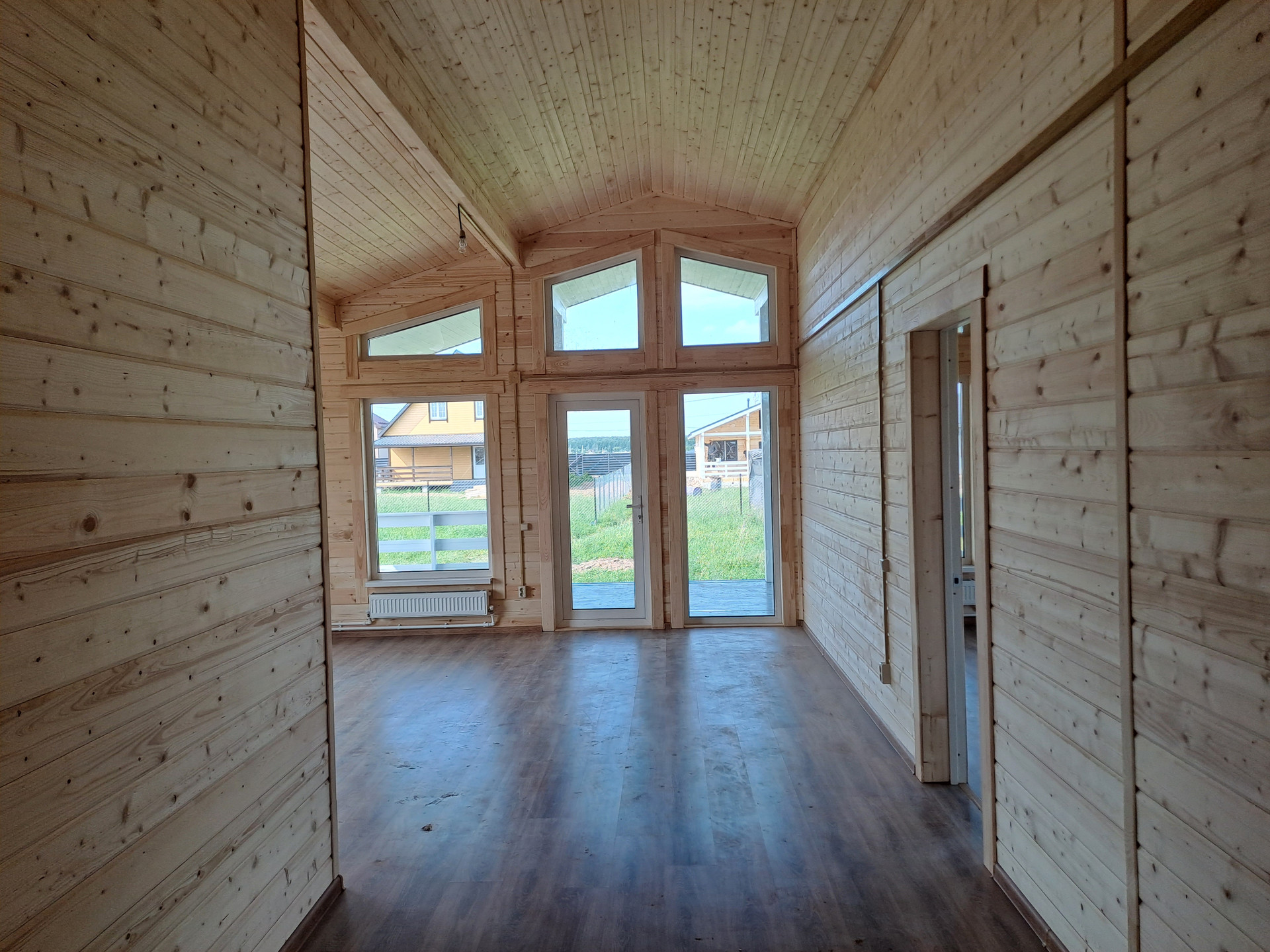 В доме кухня-гостиная площадью 26 кв. м с выходом на террасу 27 кв. м, комната 14 кв. м с отдельным санузлом, две комнаты по 13 кв. м, а также еще один отдельный санузел, техническое помещение, холл и тамбур.
