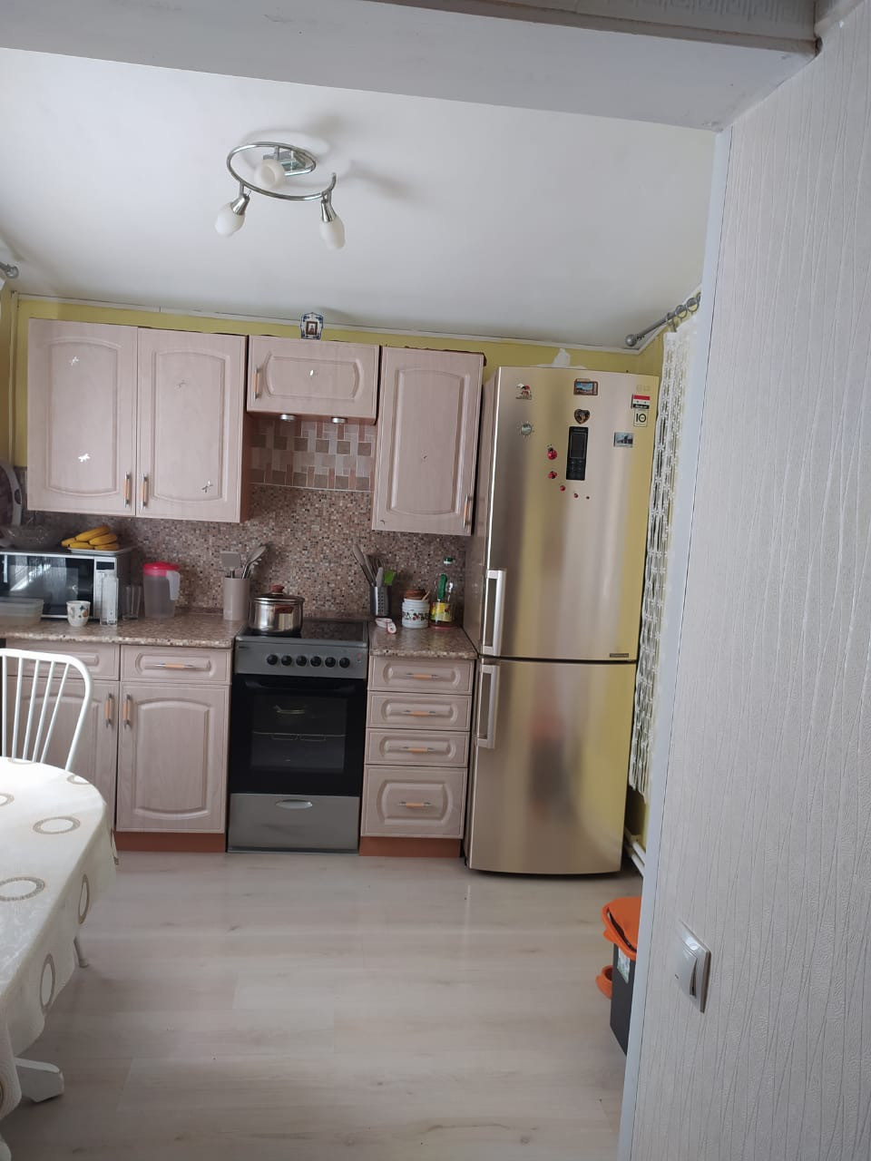 Два этажа простора и уюта, общей площадью 156,4 кв.м, к которым в качестве приятнейшего бонуса прилагается великолепная сауна, купель, гараж, участок с большими соснами и великолепными цветниками из роз.
