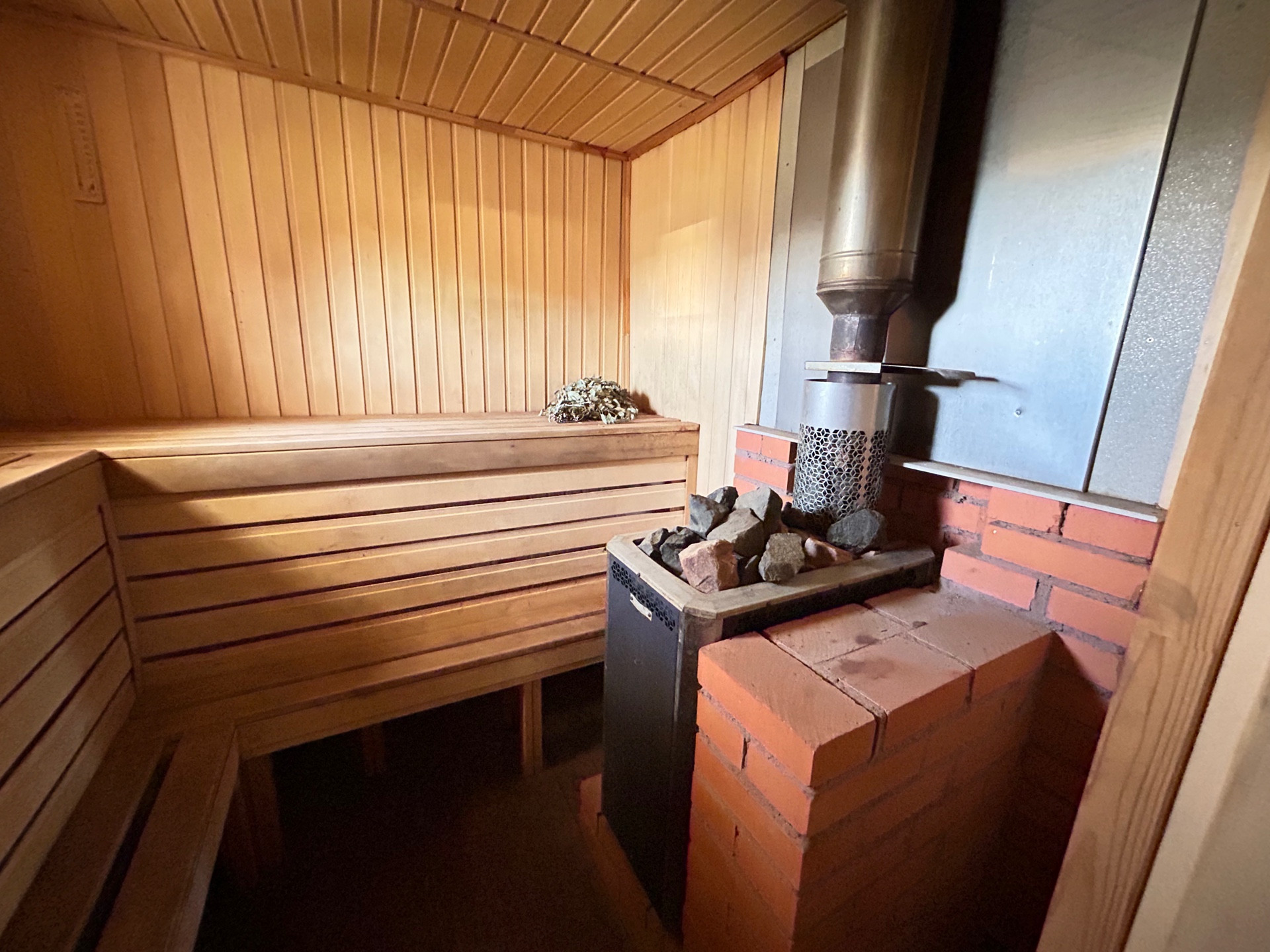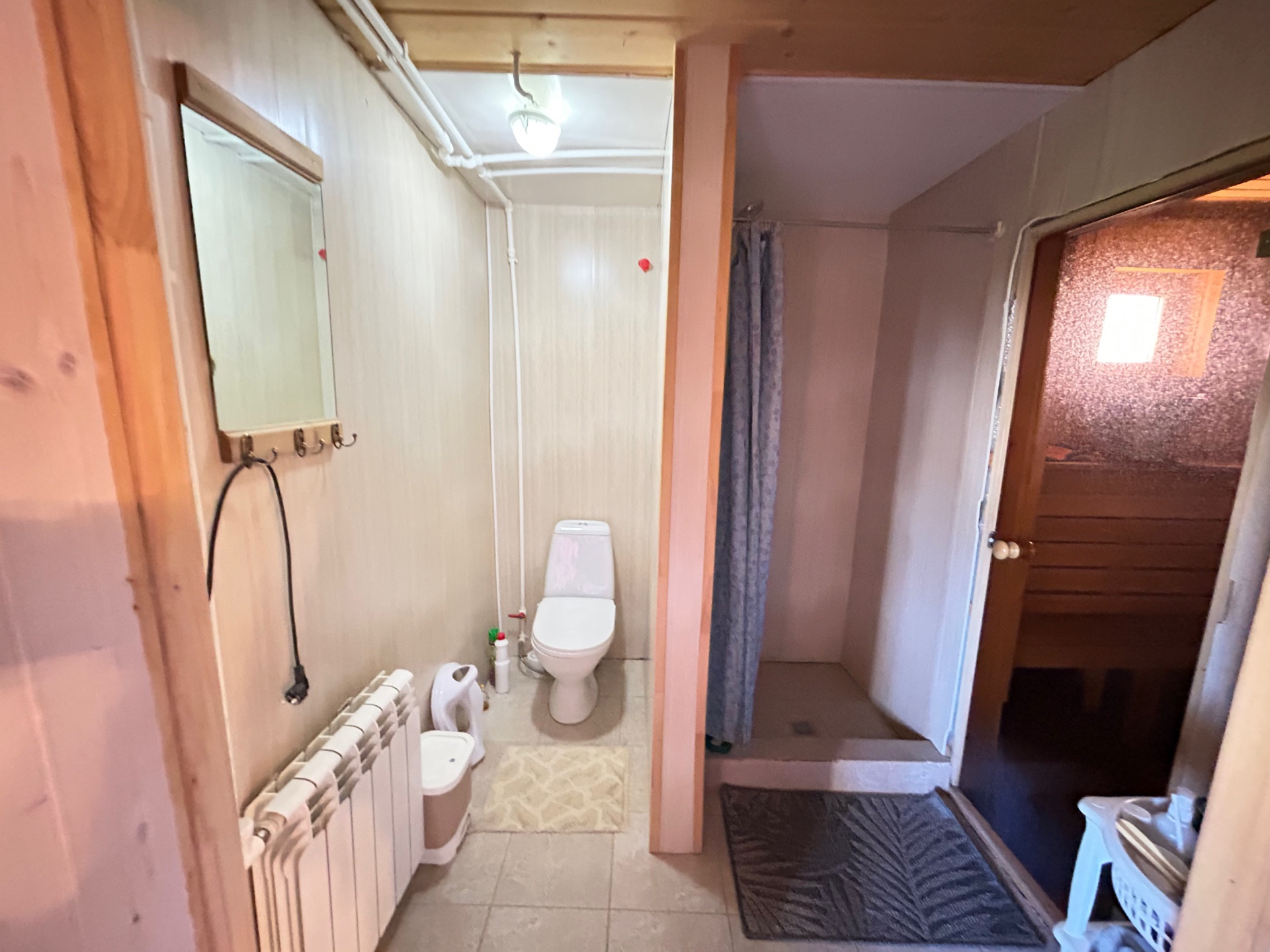 ДОМ-56,5 кв.м.- ОФОРМЛЕН КАК ЖИЛОЙ. Дом из бруса, внутри обшит вагонкой, фундамент ленточный, окна пластиковые стеклопакеты. Дом пригоден для круглогодичного проживания. На первом этаже коридор-10 кв.м., кухня гостиная-17 кв.м., на 2-этаже комната-17 кв. м. сан.узел и сауна 12,5 кв.м.