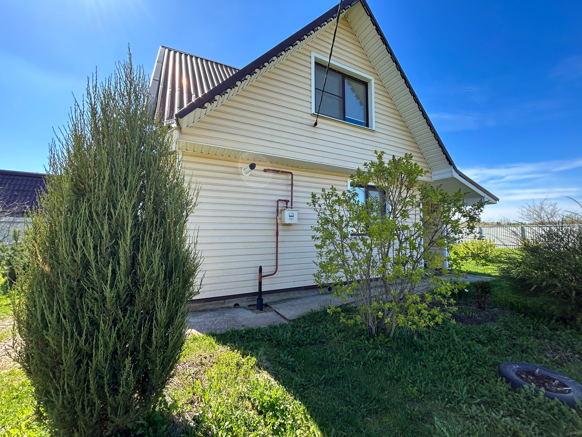 Коммуникации:ГАЗ-заведен в дом, стоит двухконтурный котел для обогрева дома и воды, электричество заведено в дом, колодец-вода заведена в дом, полностью утеплена, септик.