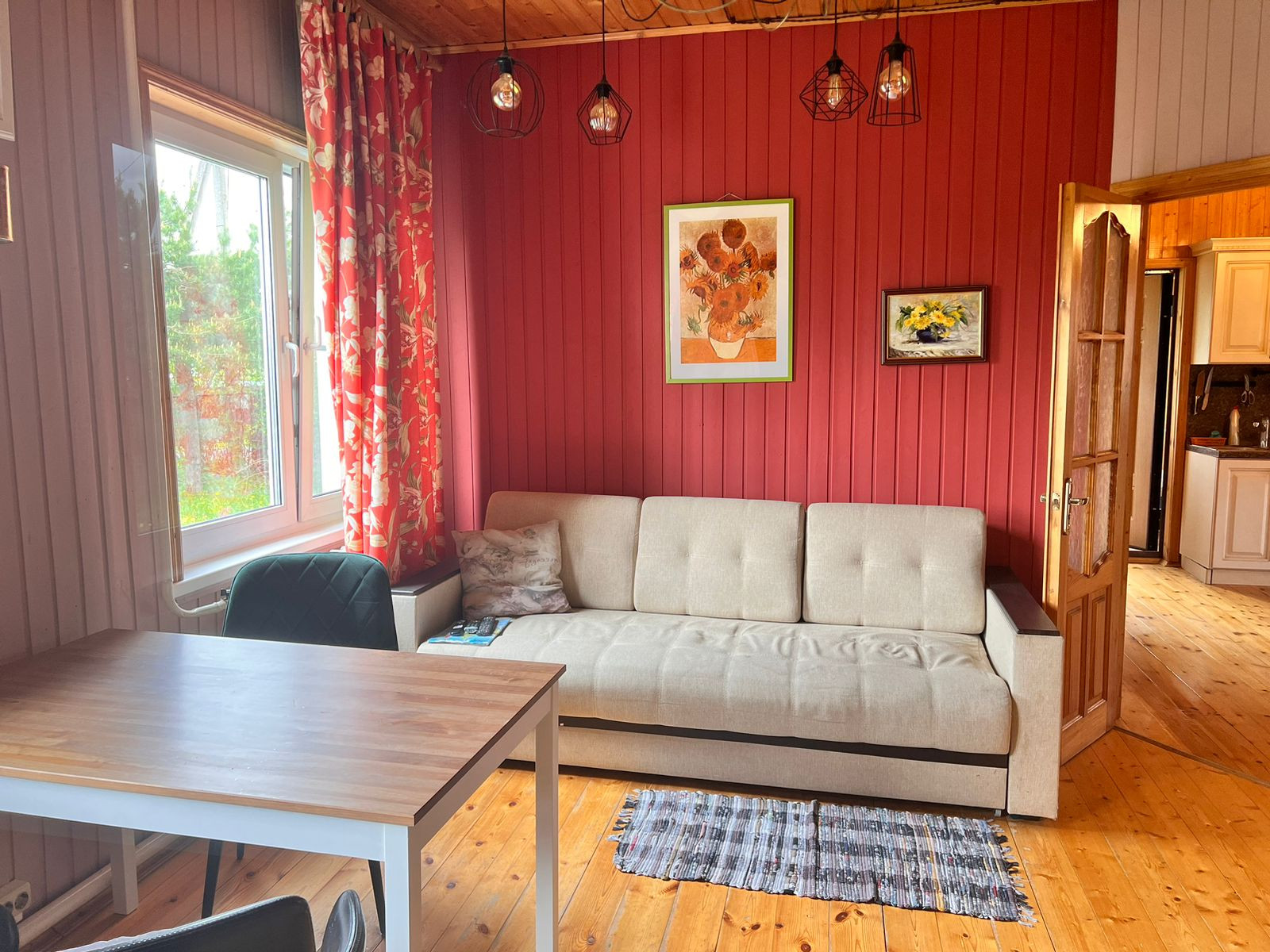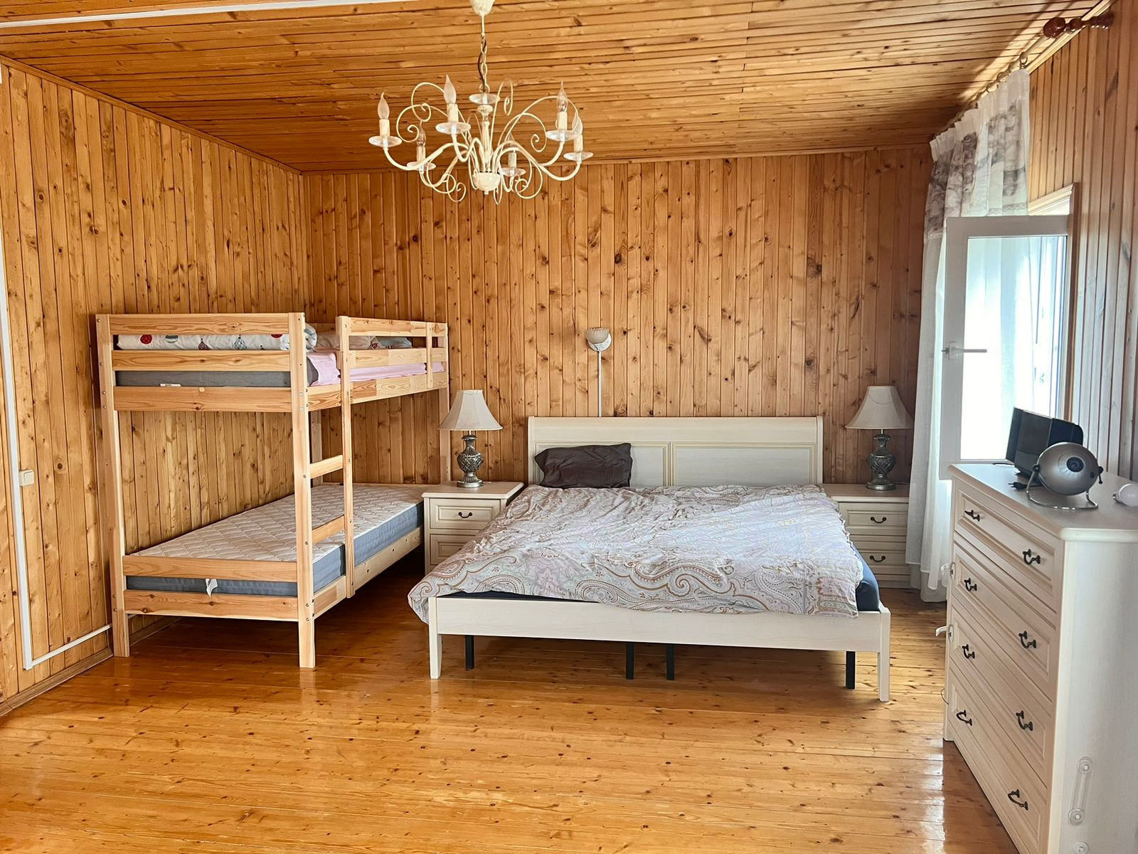 В доме три спальни, большая гостиная-столовая , кухня, санузел ( туалет +душ),