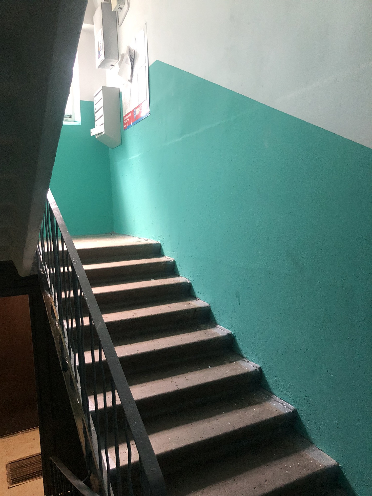 Чистый,недавно отремонтированный подъезд.
