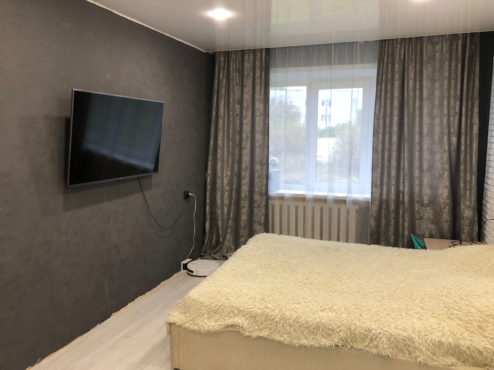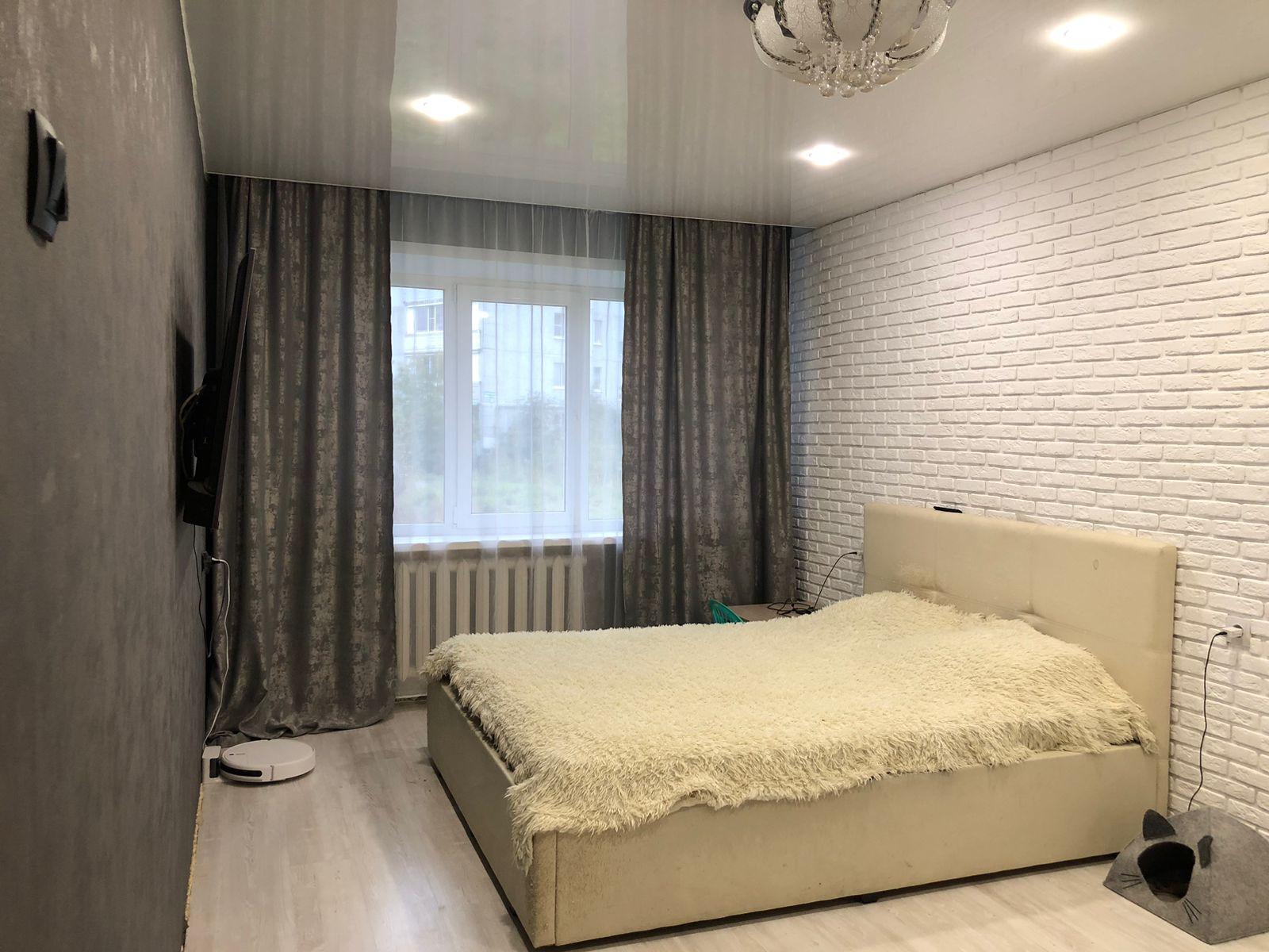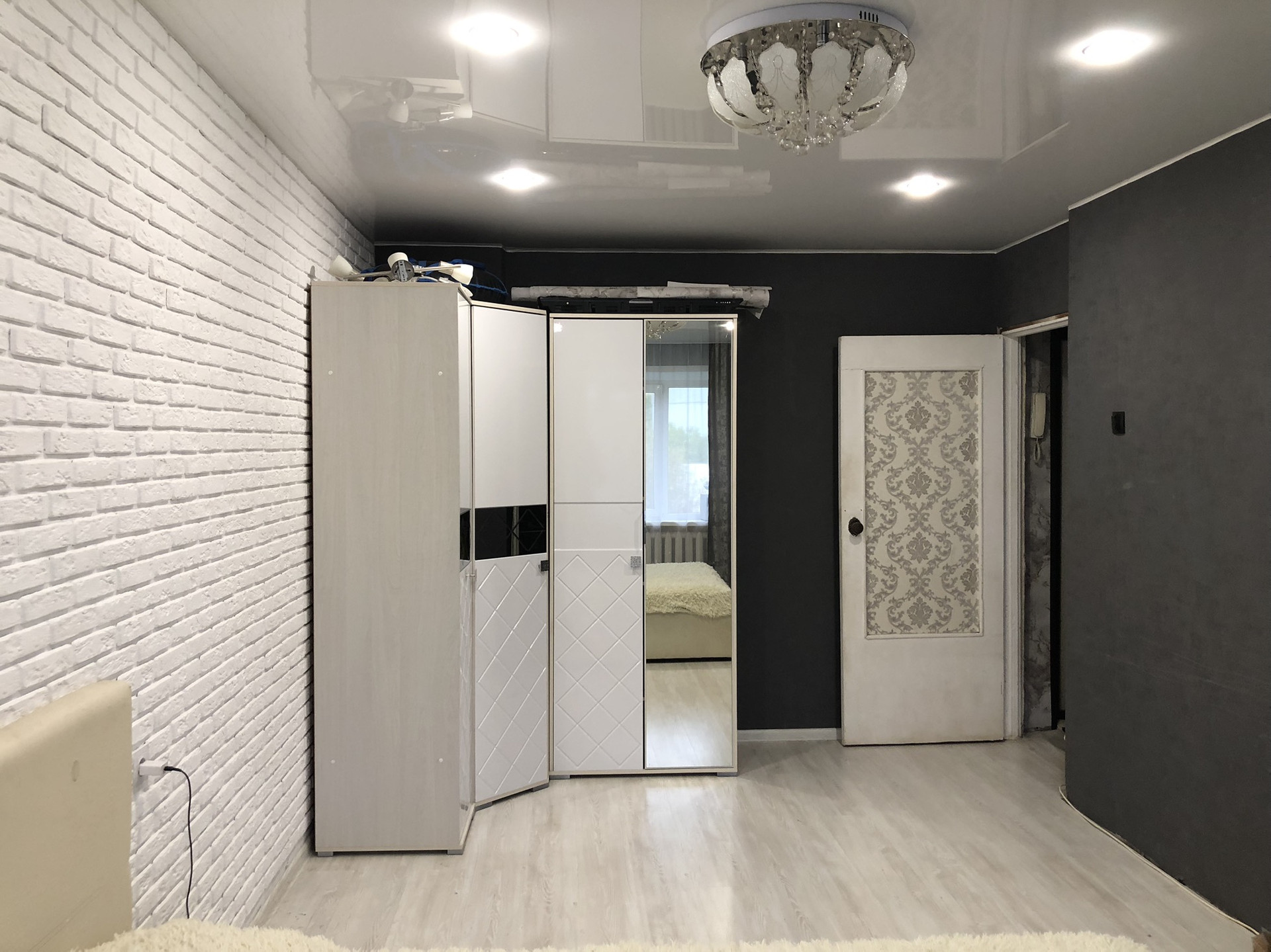 В комнатах,коридоре и кухне натяжные потолки,хорошая входная дверь.