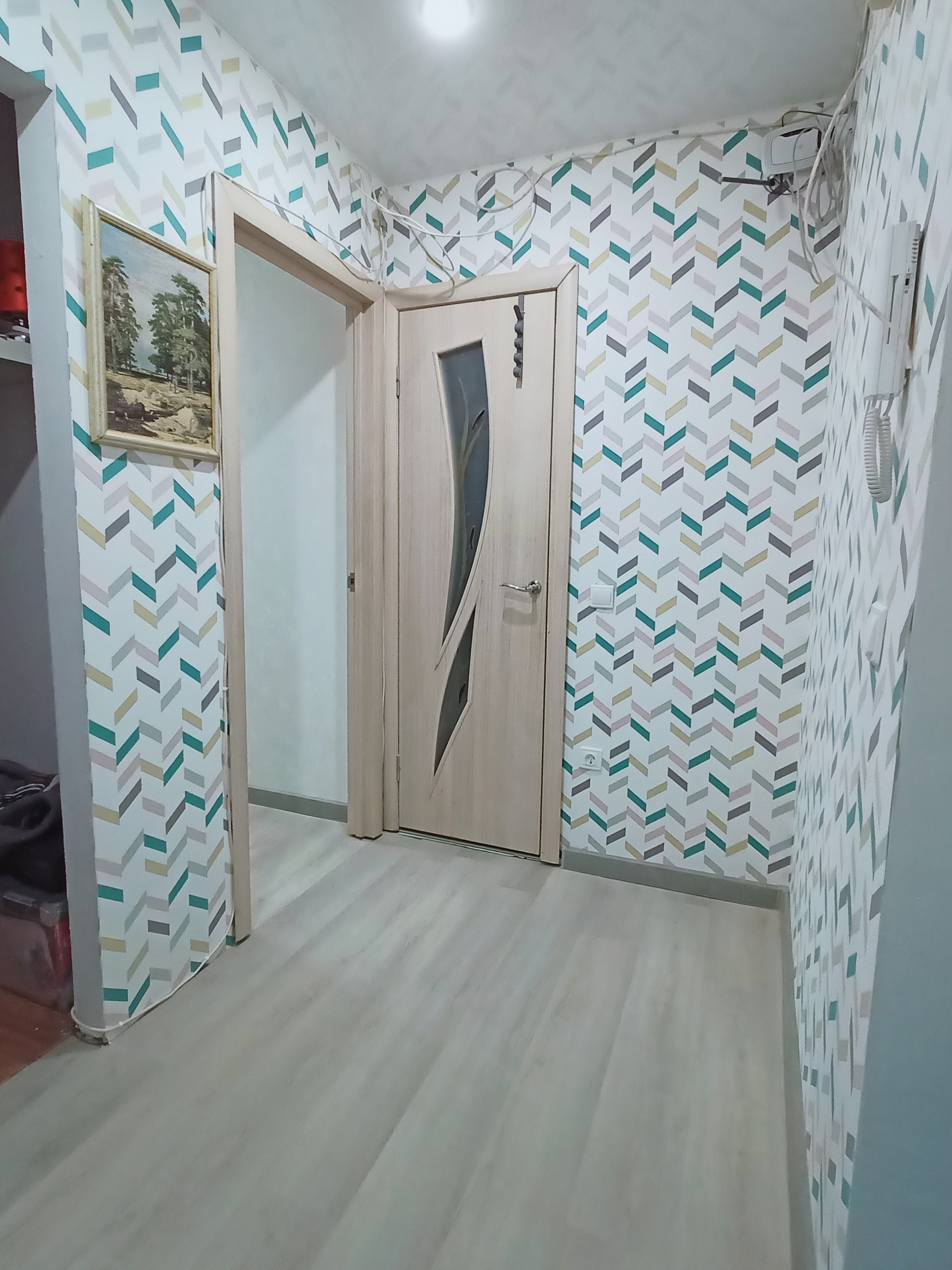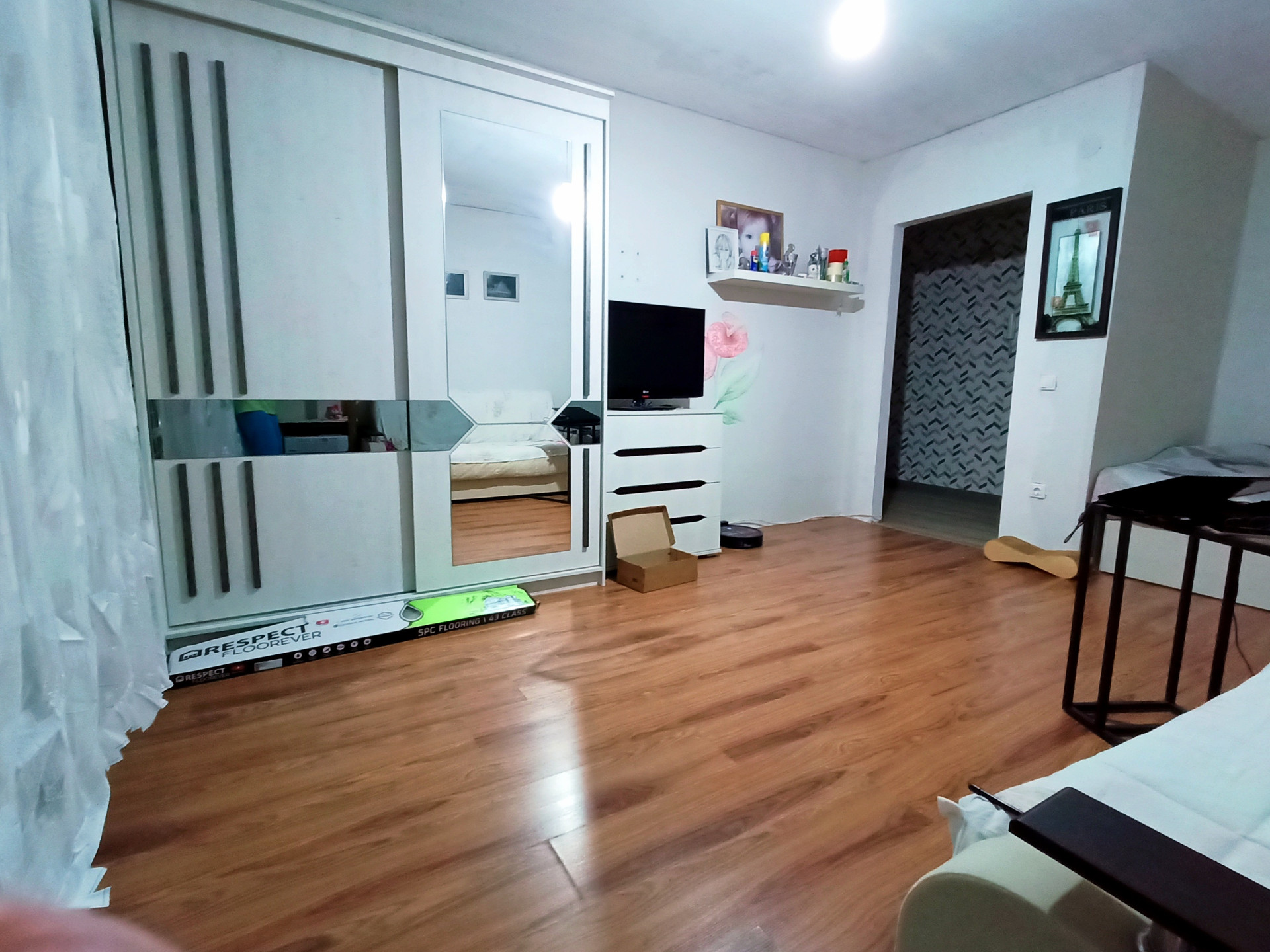 Окна стеклопакеты, лоджия застелена.