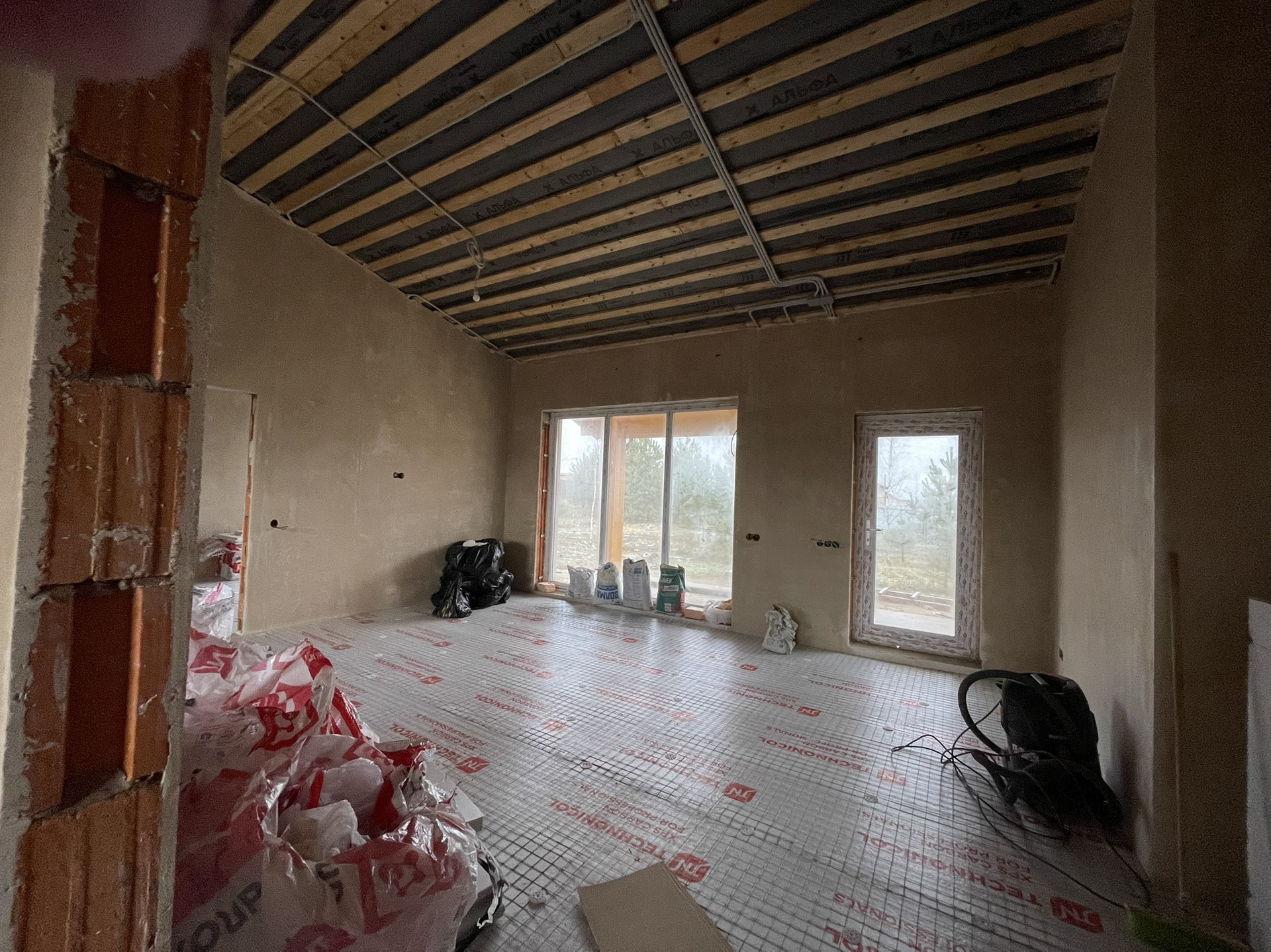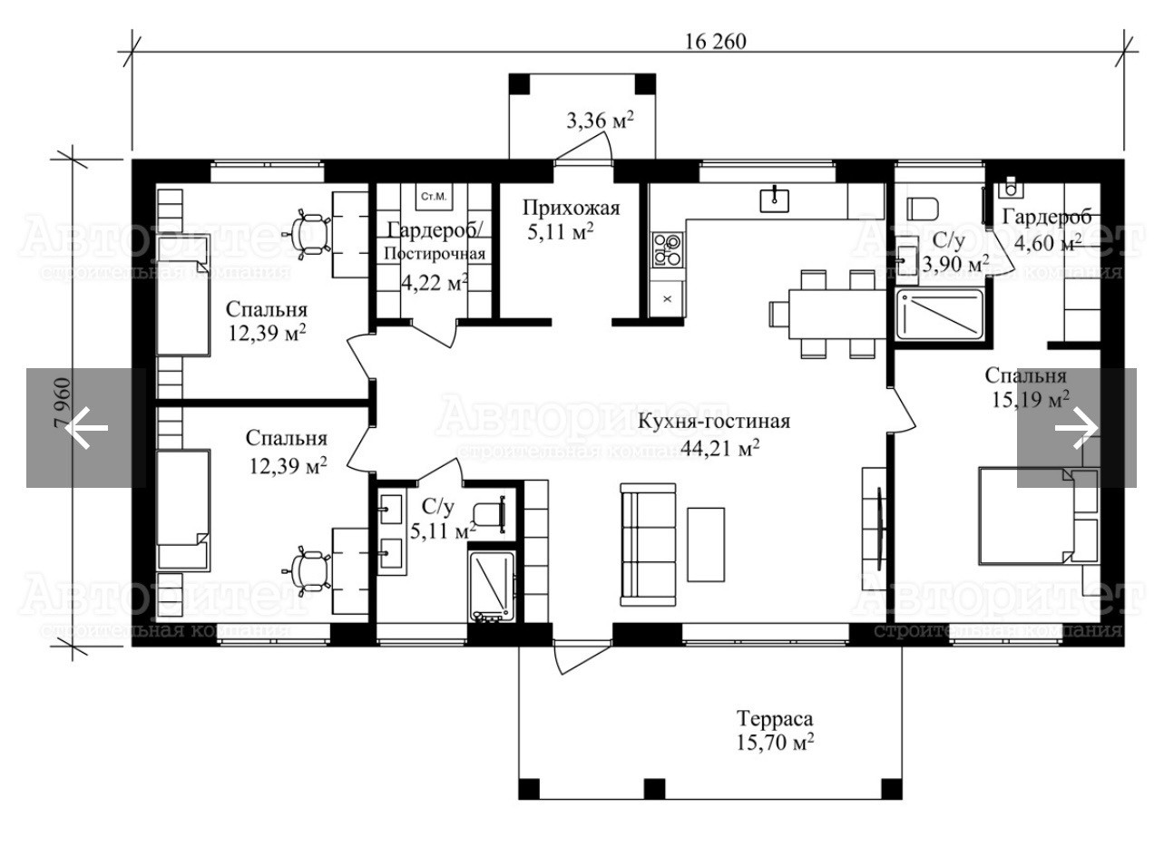 Дом с большой гостиной, две детские и мастер-спальня! Два санузла. Гардероб, терраса. Стоит на кадастре. Фундамент: плита 30 см. Построен из керамического блока, самый теплый и экологичный материал, НЕ газоблоки! Керамоблок поротерм, этот материал премиальнее газоблока, каждый профессиональный строитель это знает, стропильный система (фермы) собрана на заводе! Кровля керамочерепица! Дом мегатеплый