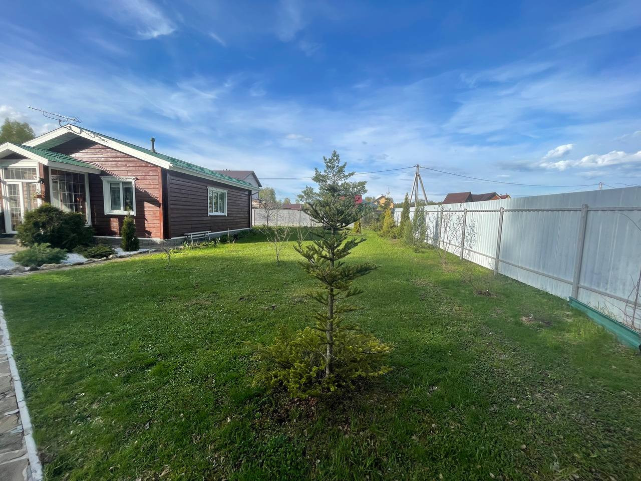 Дом каркасный, возведен на свайном фундаменте. Крыша из профнастила со снегоупорами.