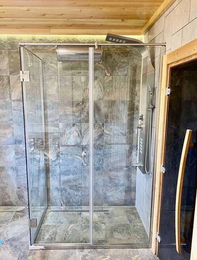 Парилка (отделана липовой вагонкой, входная дверь стеклянная Sаwо (Финляндия);