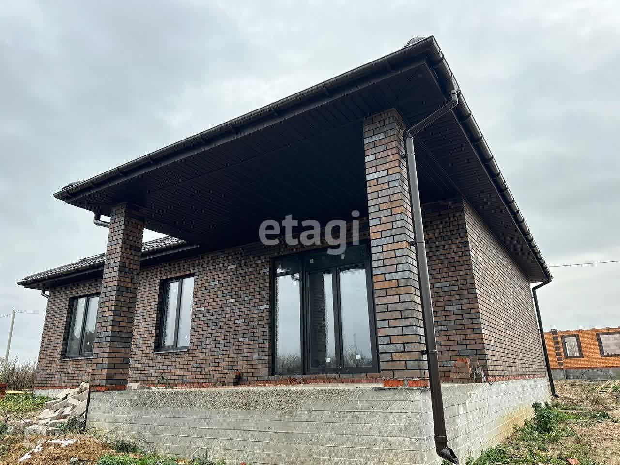 Дом с залитыми полами, проведённой проводкой, отштукатуренными стенами, установлен газовый котёл, утеплена крыша, облицован кирпичём.