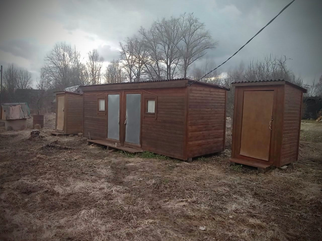 - 2 вагончика-хозпостройки для инструментов и хранения.