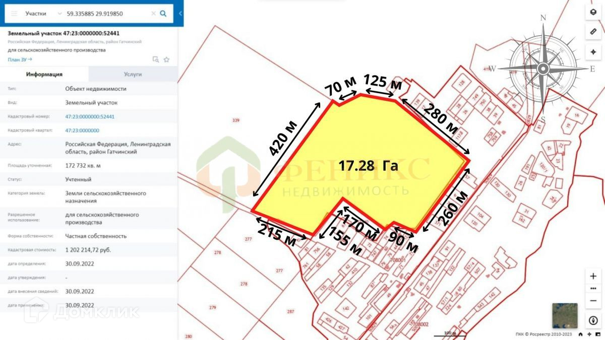 Площадь: 172732 м2 ( 17.3 Га )