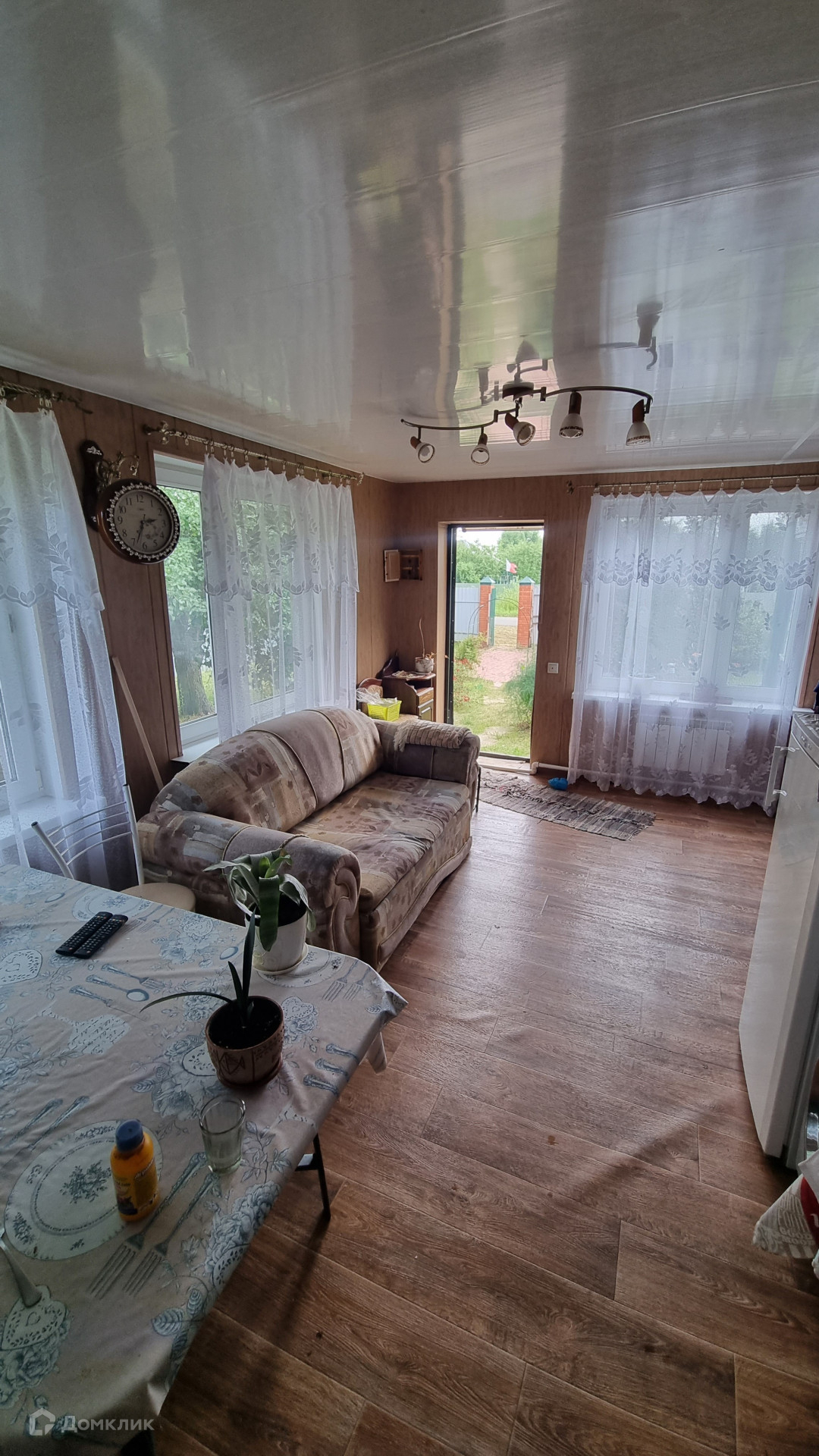 Одноэтажный, уютный дом. Заведен газ, вода из колодца (6 колец), электричество.  Мебель остается частично.