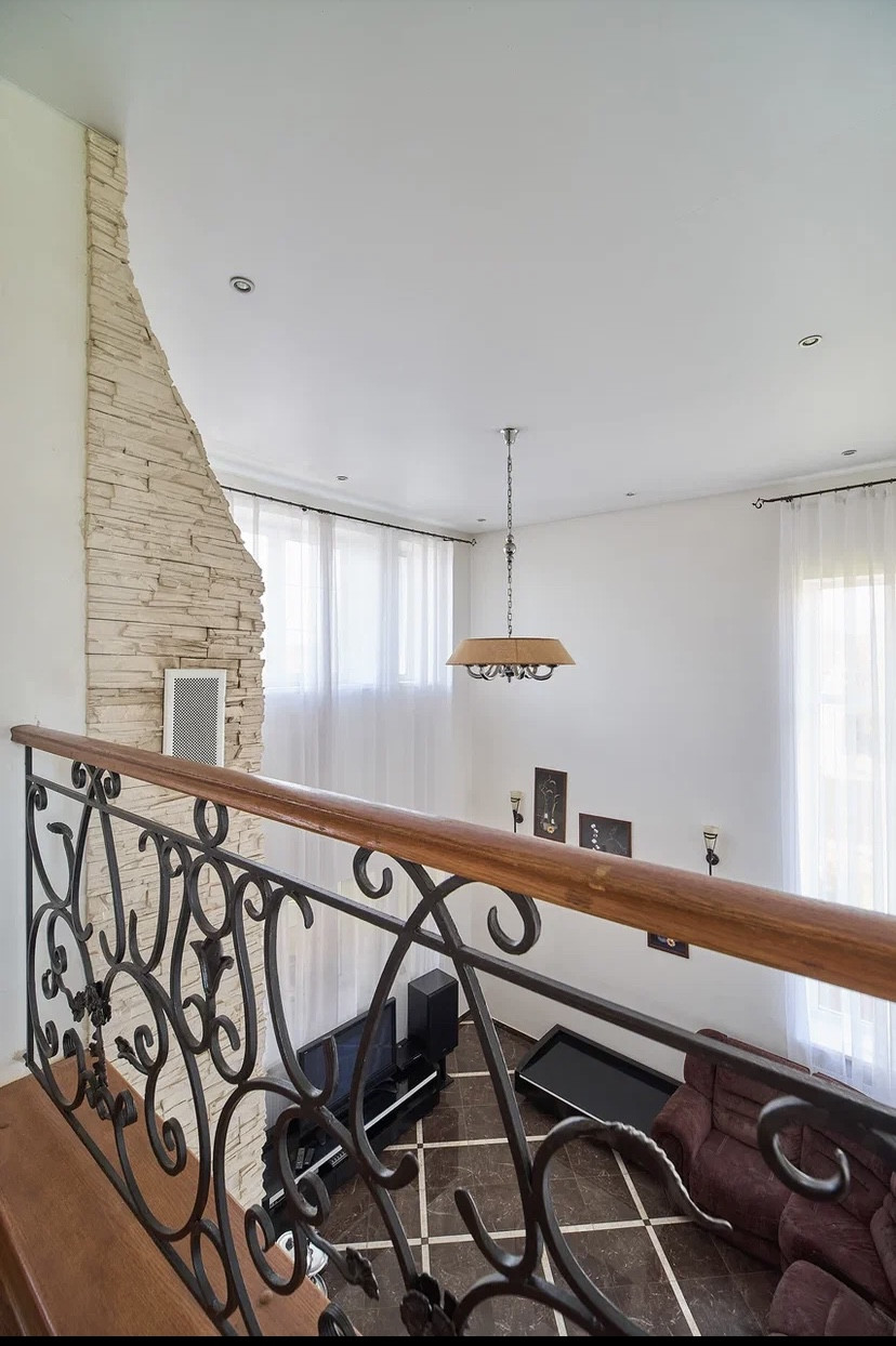 Дом полностью меблирован, лестница из бука с кованными периллами на бетонном с арматурой каркасе,