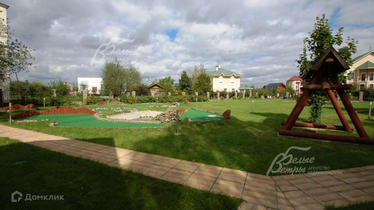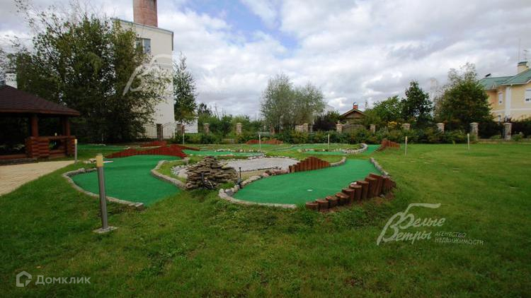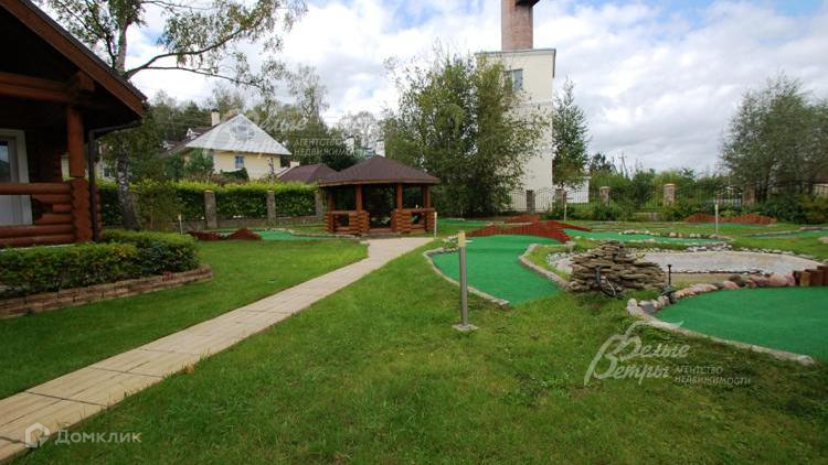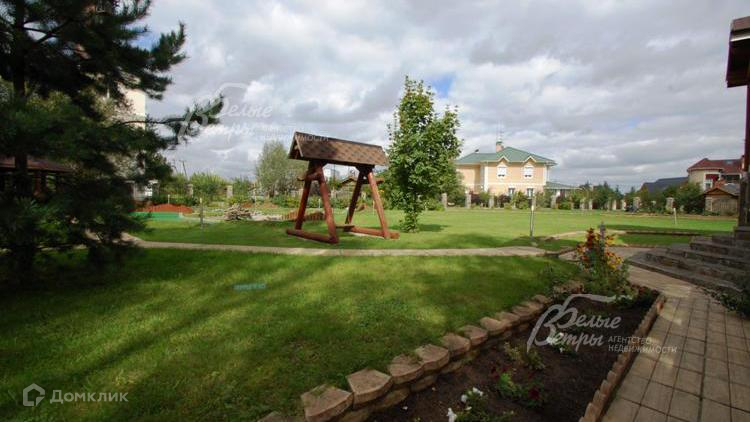 Благоустройство участка: проведен ландшафтный дизайн: дорожки вымощены камнем, стилизованым под доску, по фасаду забора посажена живая изгородь, поле для минигольфа, установлены декоративный колодец и собачья конура. \nСтатус земли: земли поселений, для ижс.
