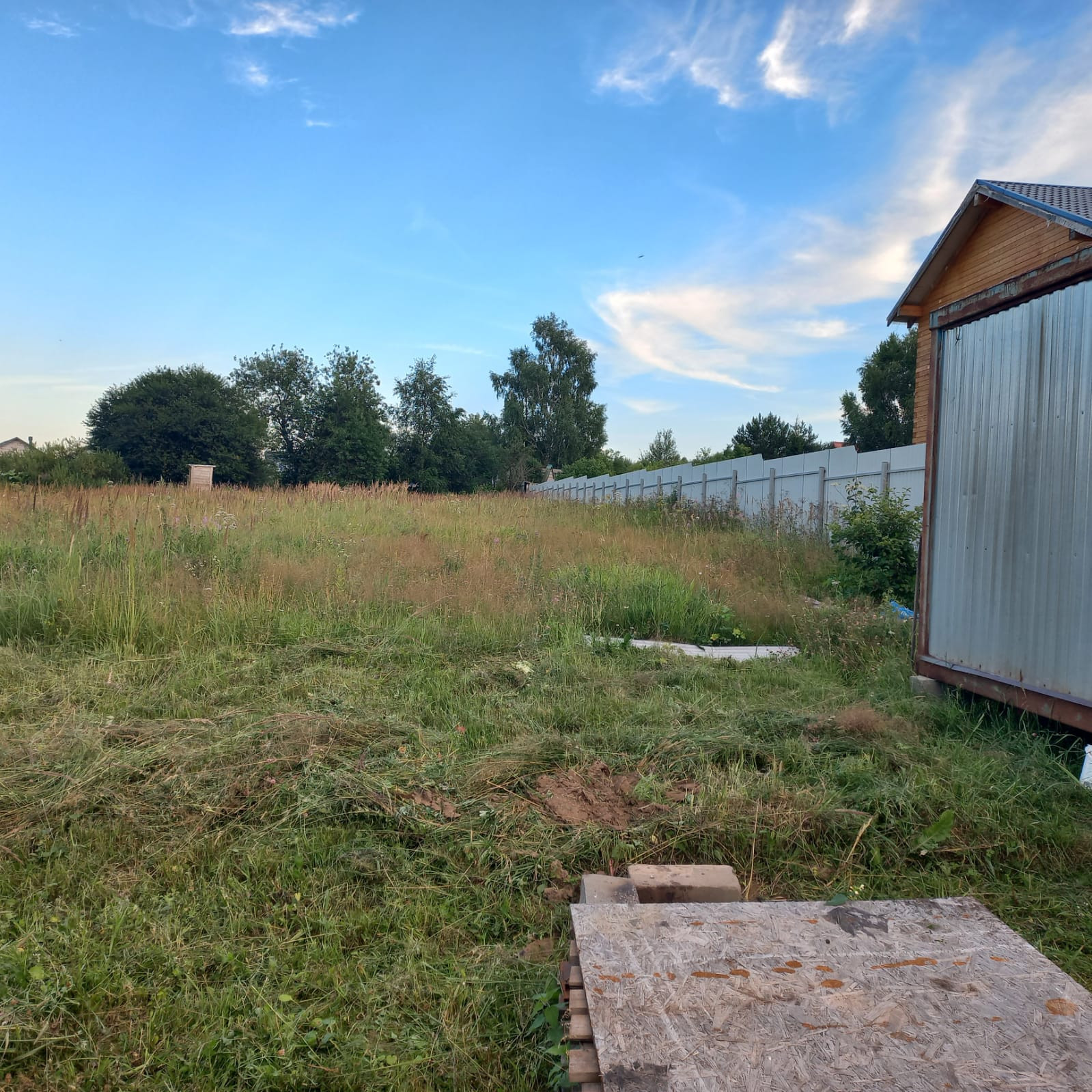 Очень красивое, тихое место, есть соседи. Остановка общественного транспорта в шаговой доступности, участок огорожен с двух сторон забором, есть благоустроенный вагончик.