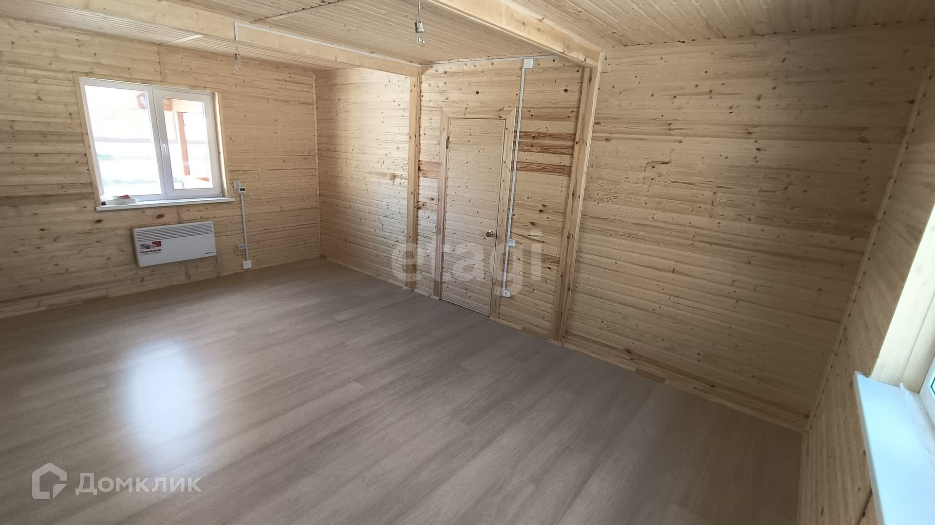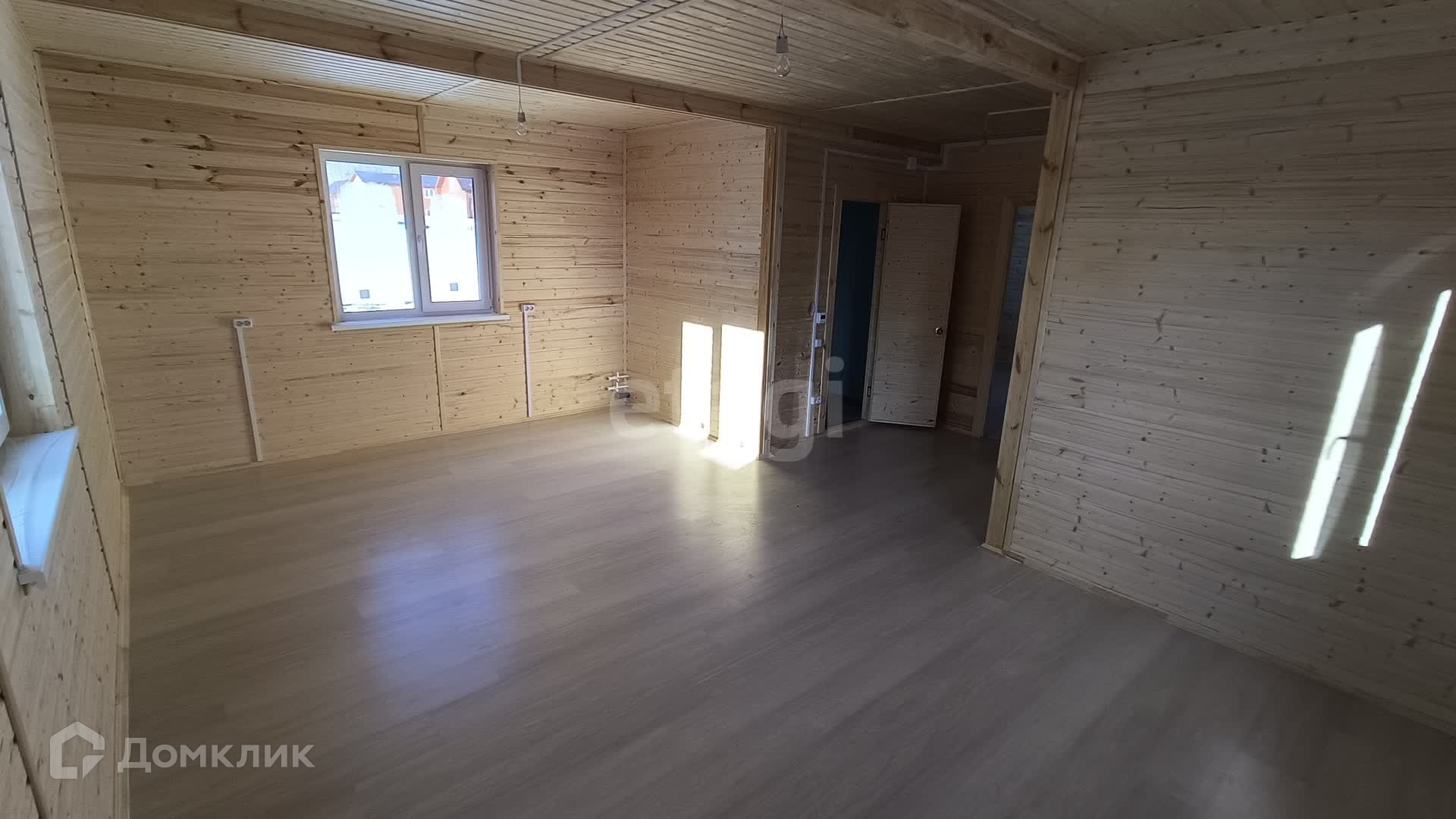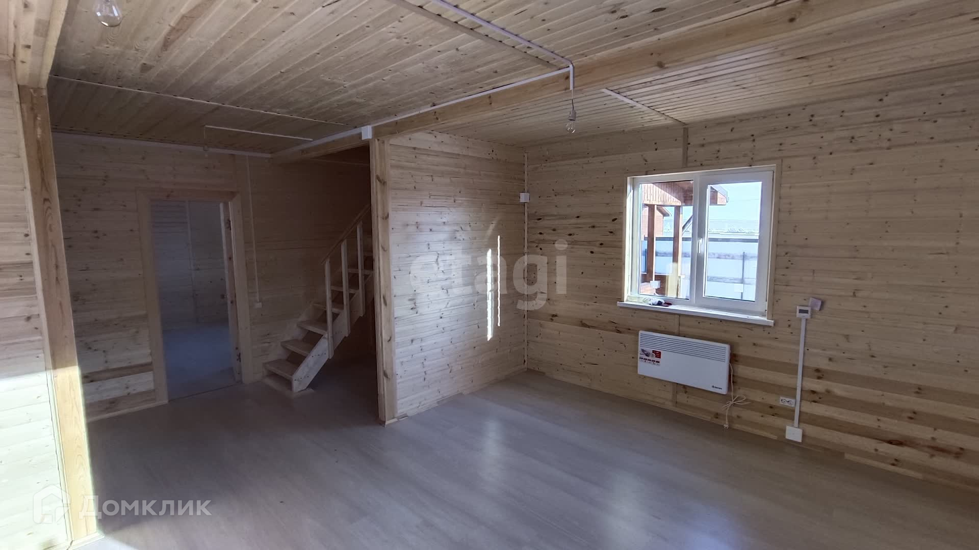 В доме на первом этаже кухня-гостиная, просторная комната и сан. узел.