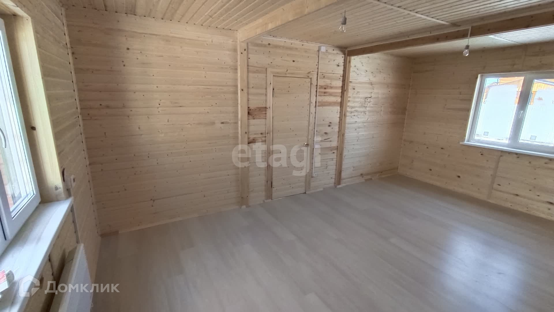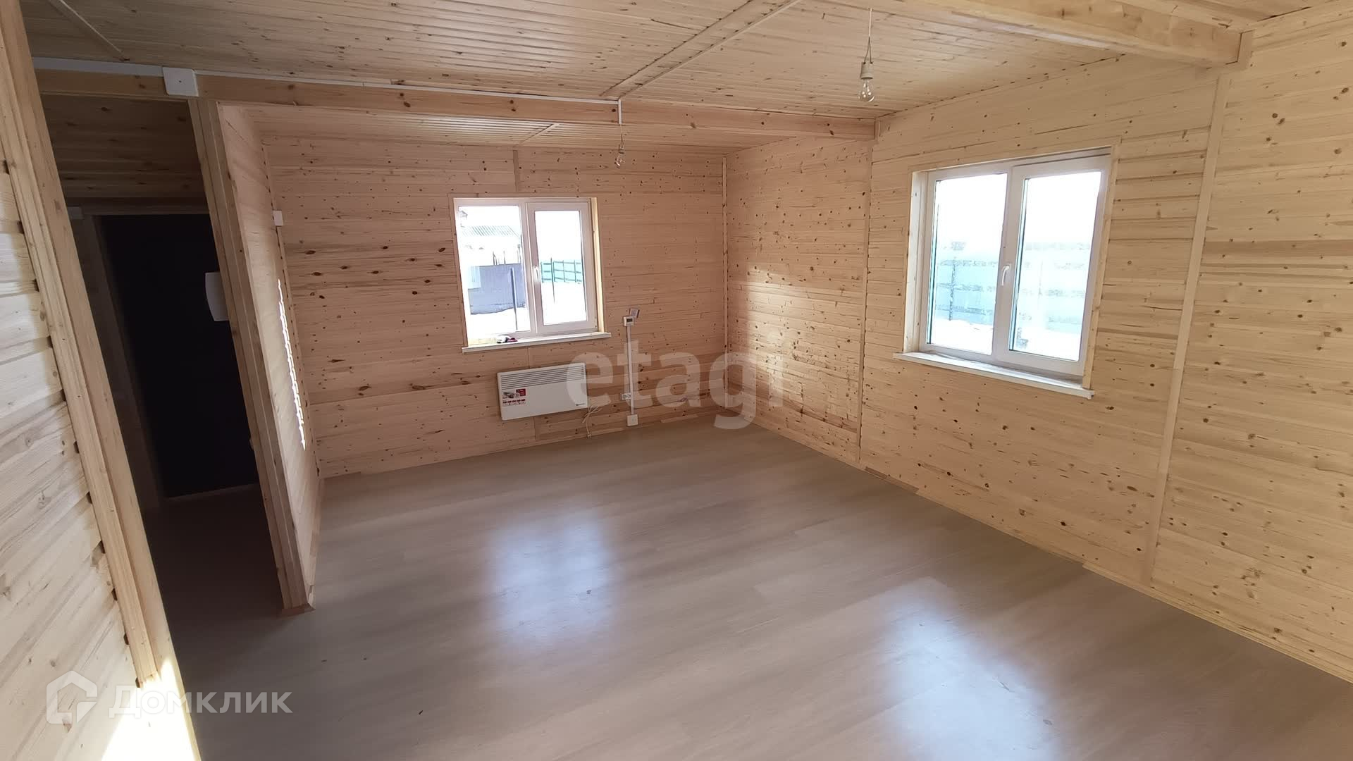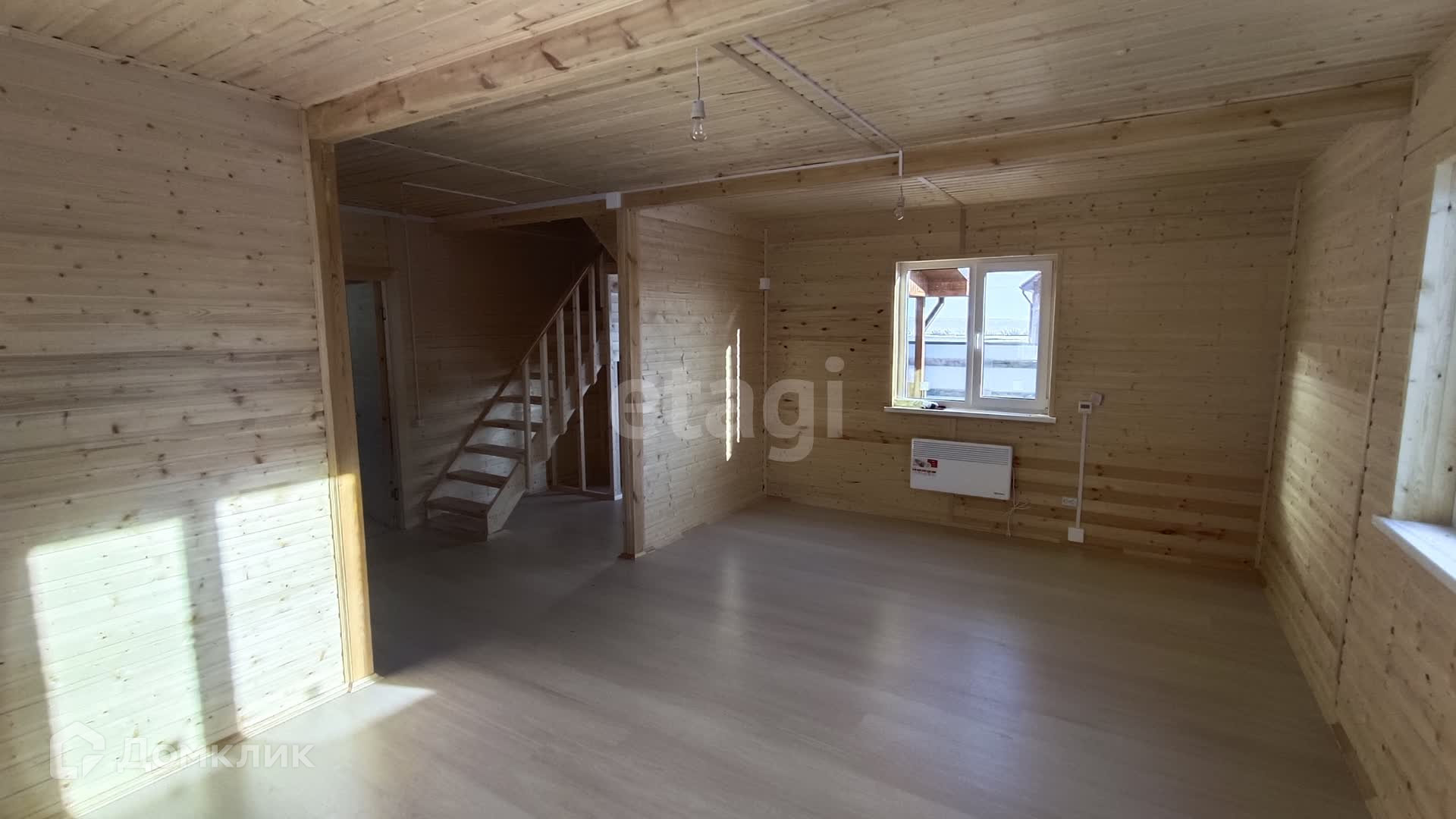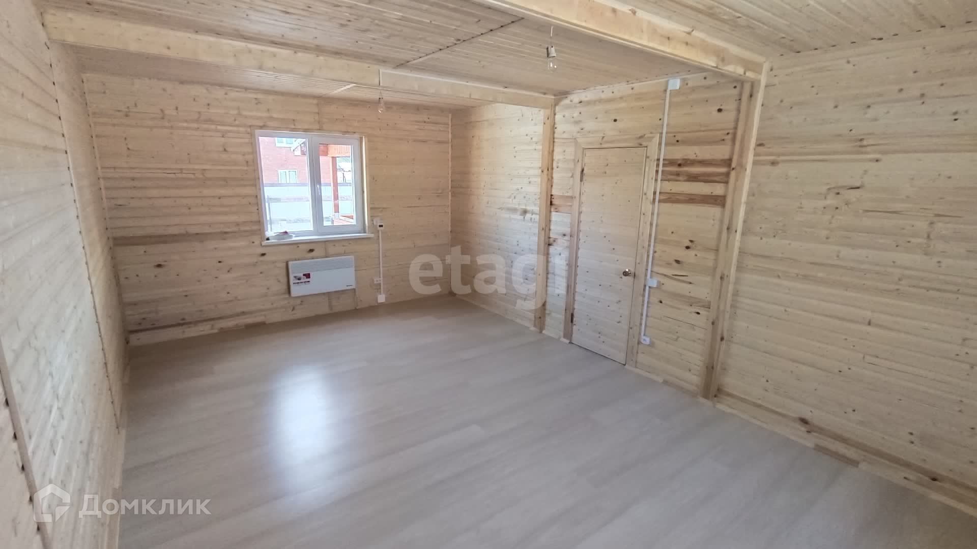 В доме на первом этаже кухня-гостиная, просторная комната и сан. узел.