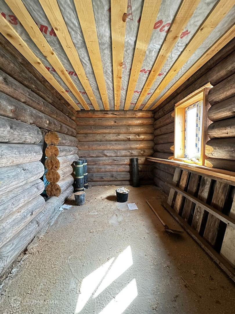 хороший зимний сруб диаметр 300 мм., потолок утеплен эковатой 200 мм., объект требует ремонта.Дополнительно на участке расположен фундамент блочного дома (незавершенная кладка до 6 рядов).