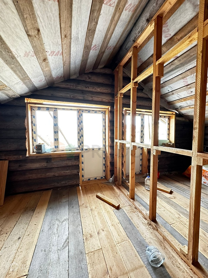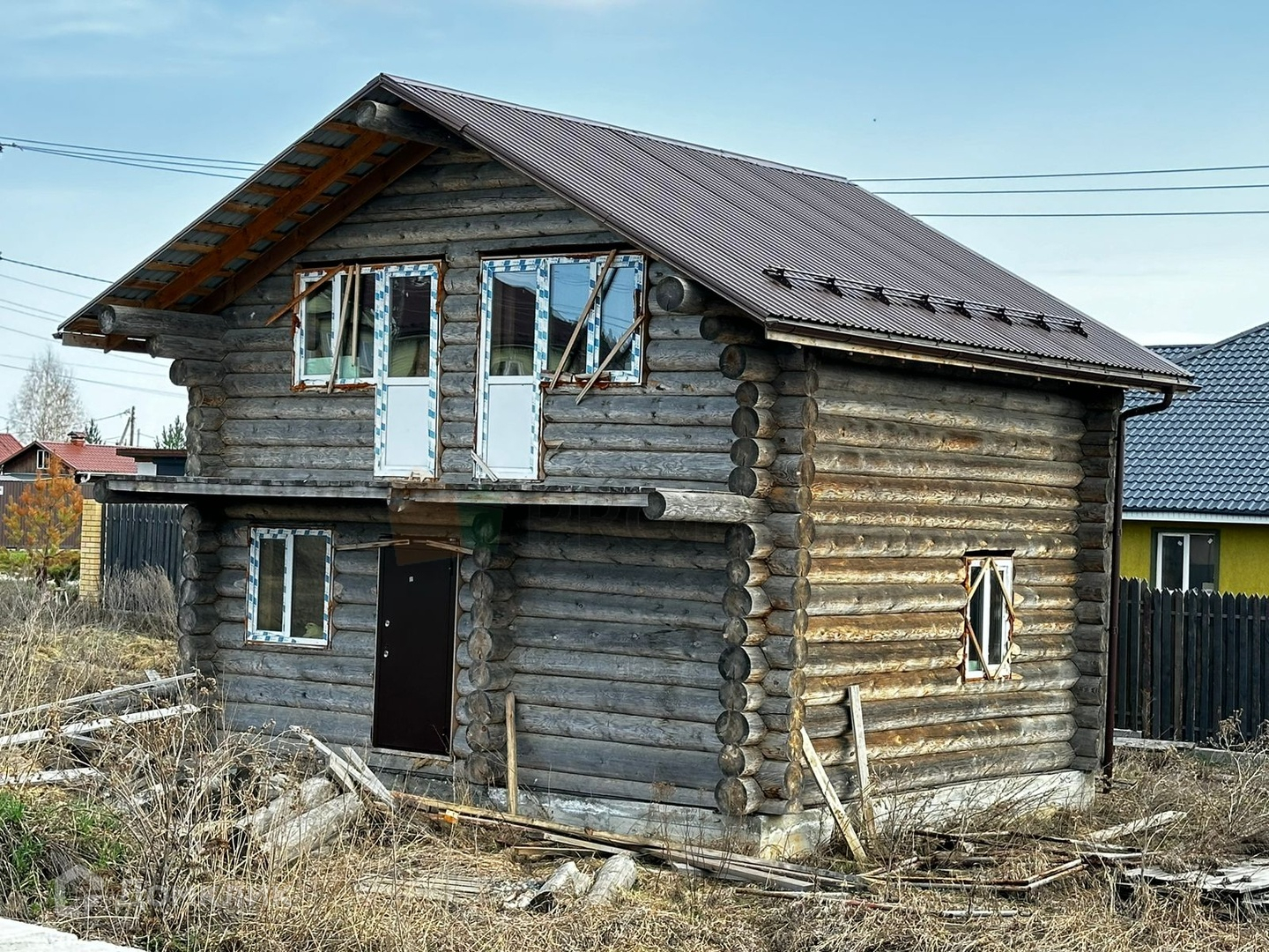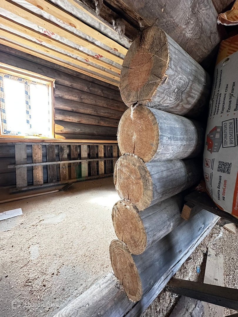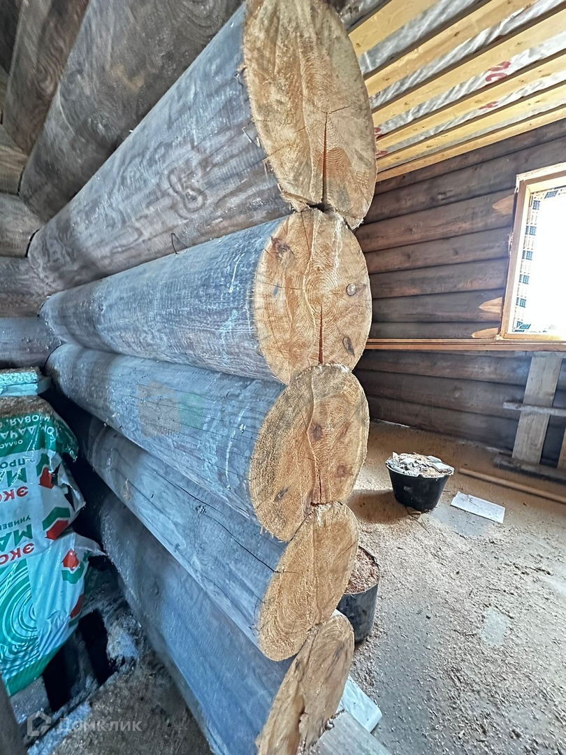 На земельном участке расположен недостроенный 2-этажный дом из бревна: