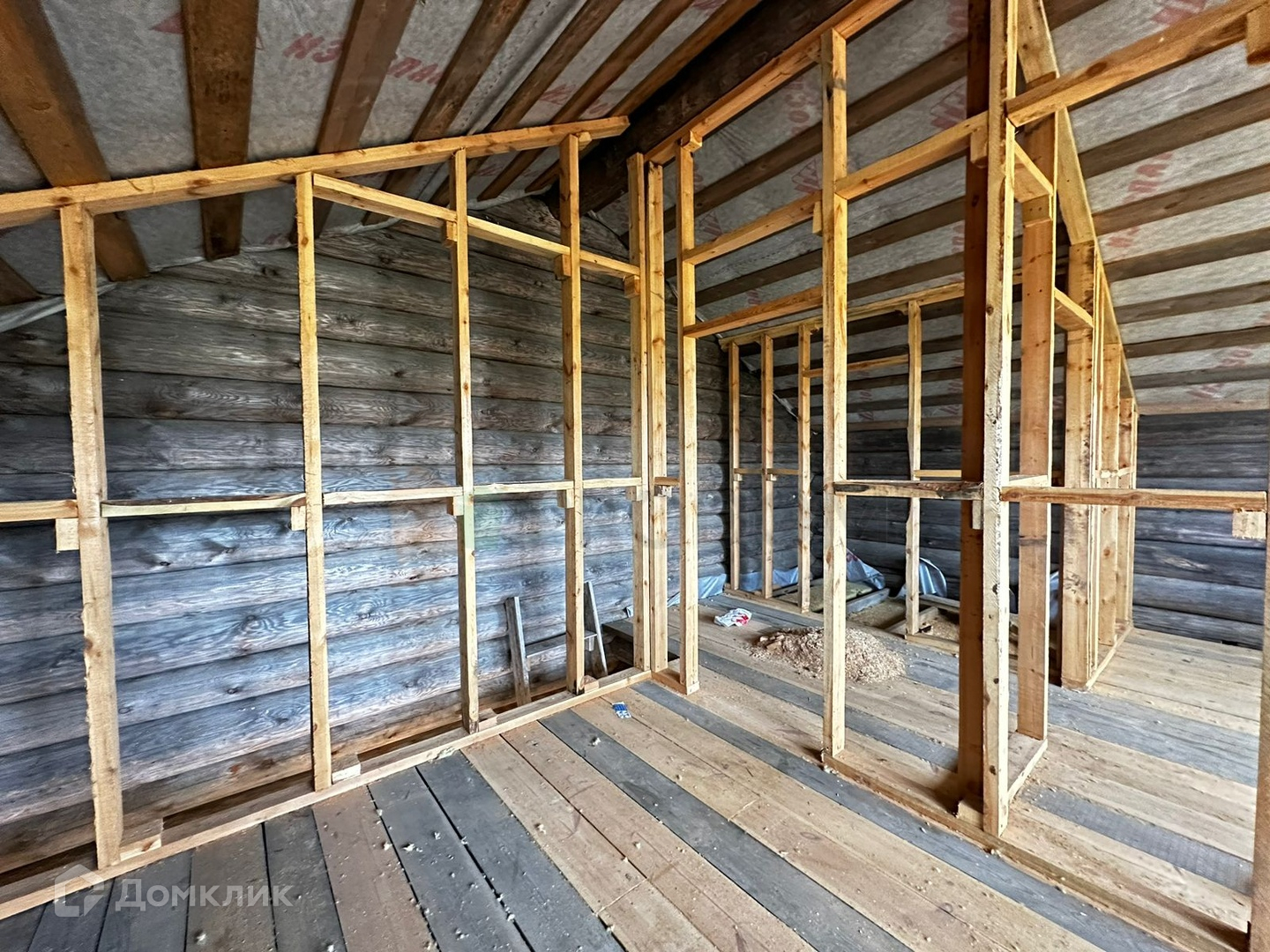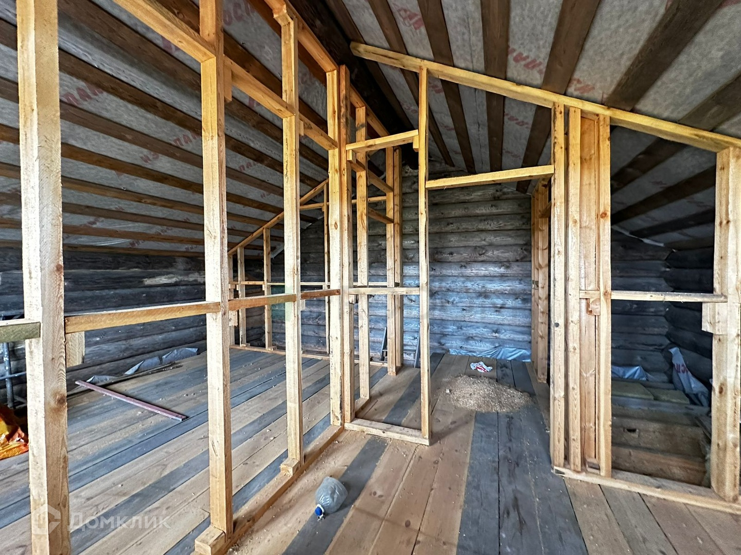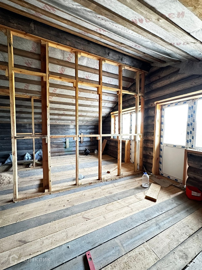 На земельном участке расположен недостроенный 2-этажный дом из бревна: