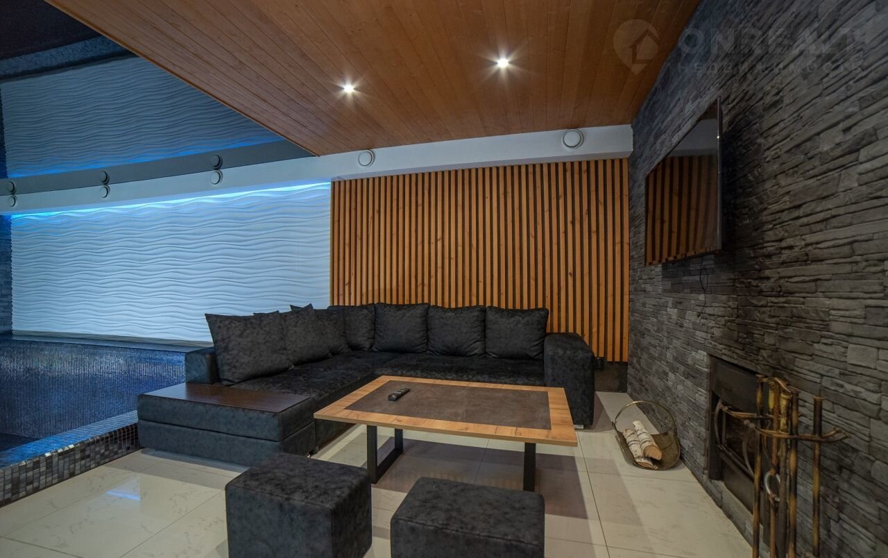 Здание Спа построено из монолитного полистиролбетона, внутренние стены кирпич. Здание полностью автономно от основного дома, своя скважина, септик, отопление, водоснабжение, приточно вытяжная вентиляция с подогревом воздуха.
